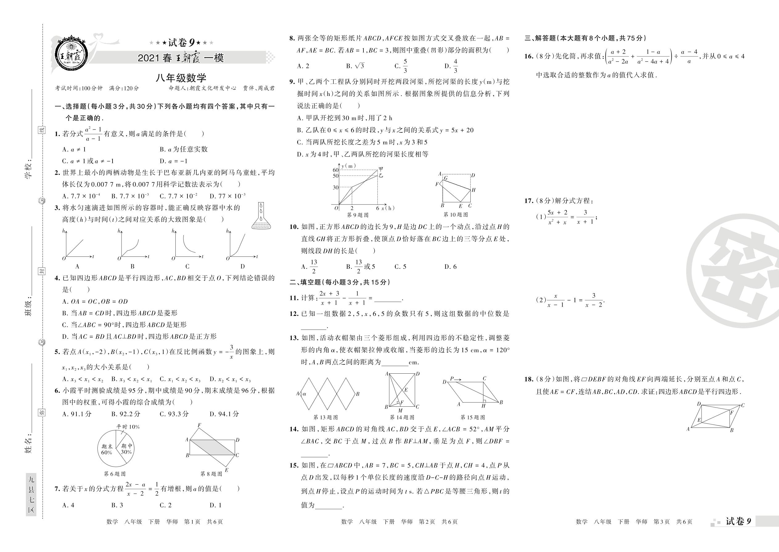 王朝霞期末模拟卷八年级下册数学(华师版)_R21080685957【9】