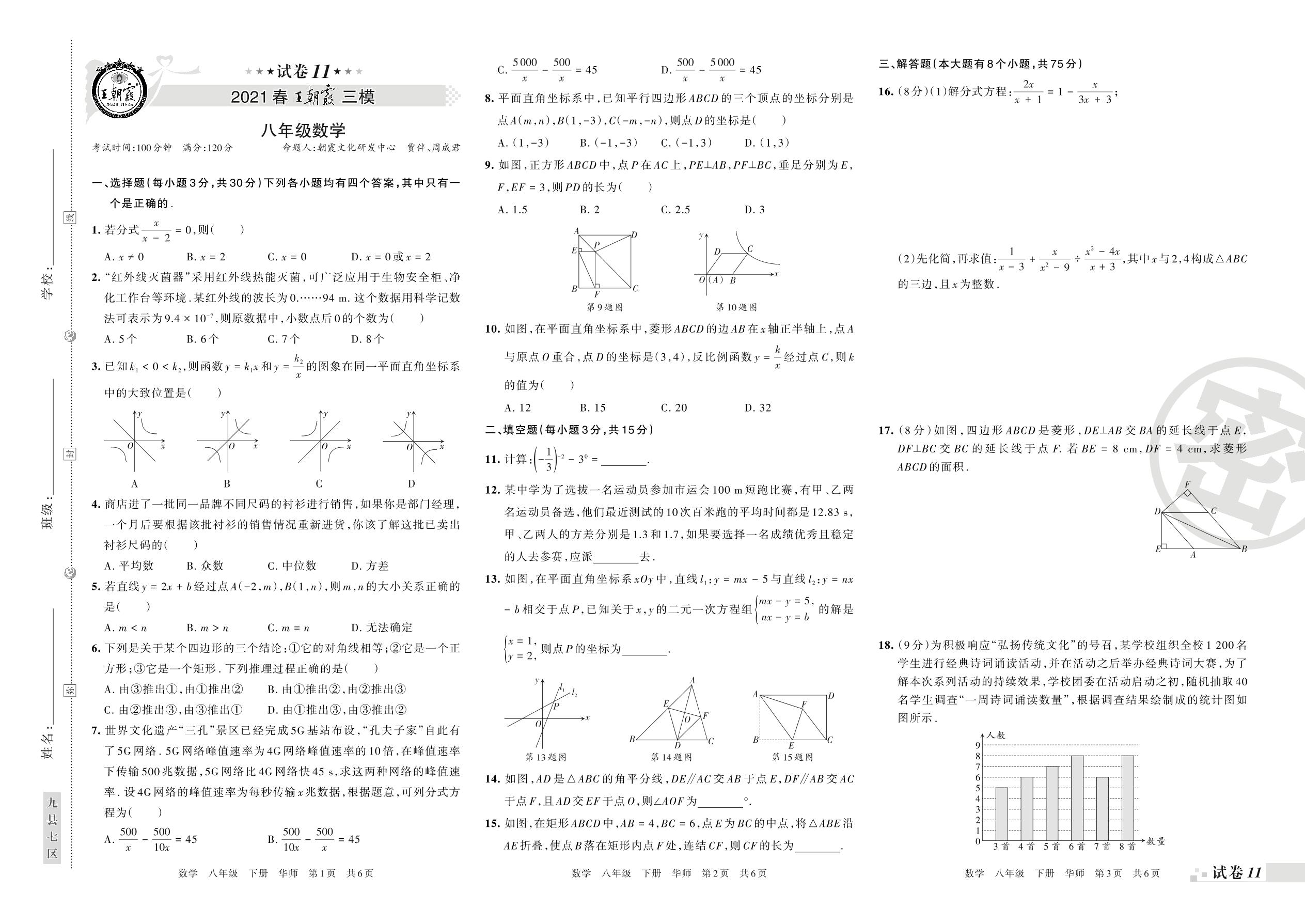 王朝霞期末模拟卷八年级下册数学(华师版)_R21080690014【11】