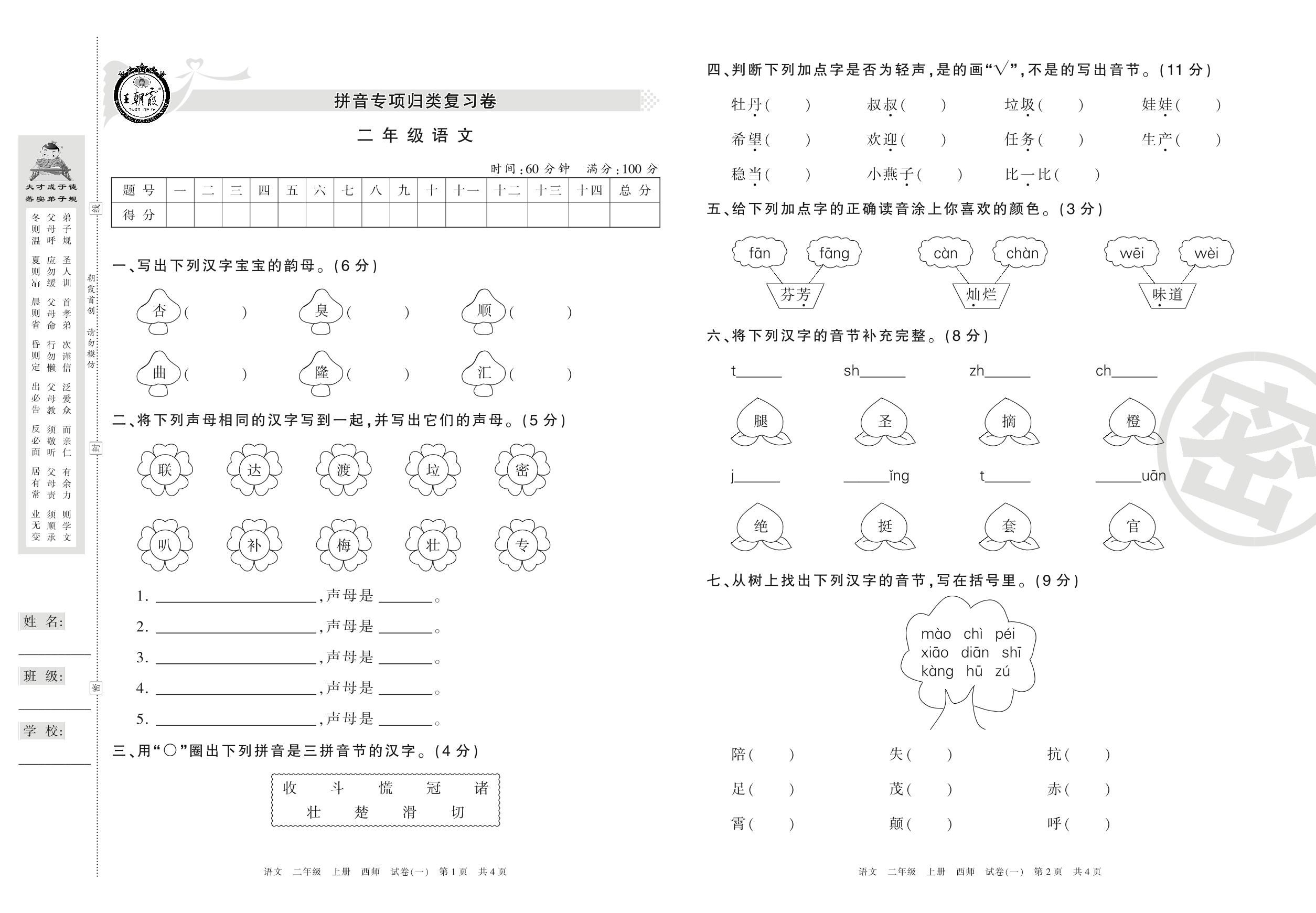 王朝霞期末专项卷二年级上册语文(西师版)_R21080174725【1】