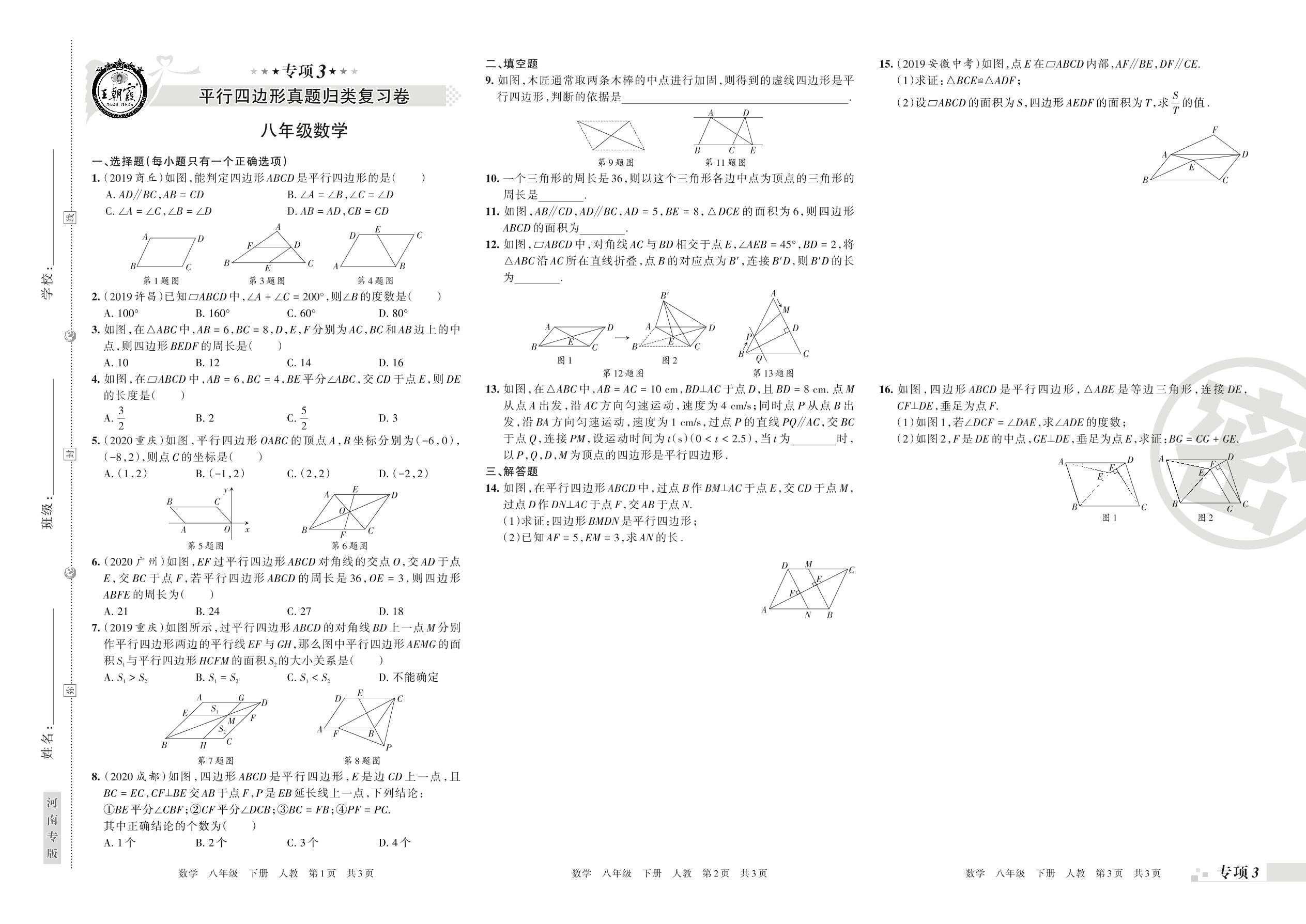王朝霞期末专项卷——平行四边形、特殊的平行四边形真题归类复习八年级下册数学(人教版)_R21080690218【0】
