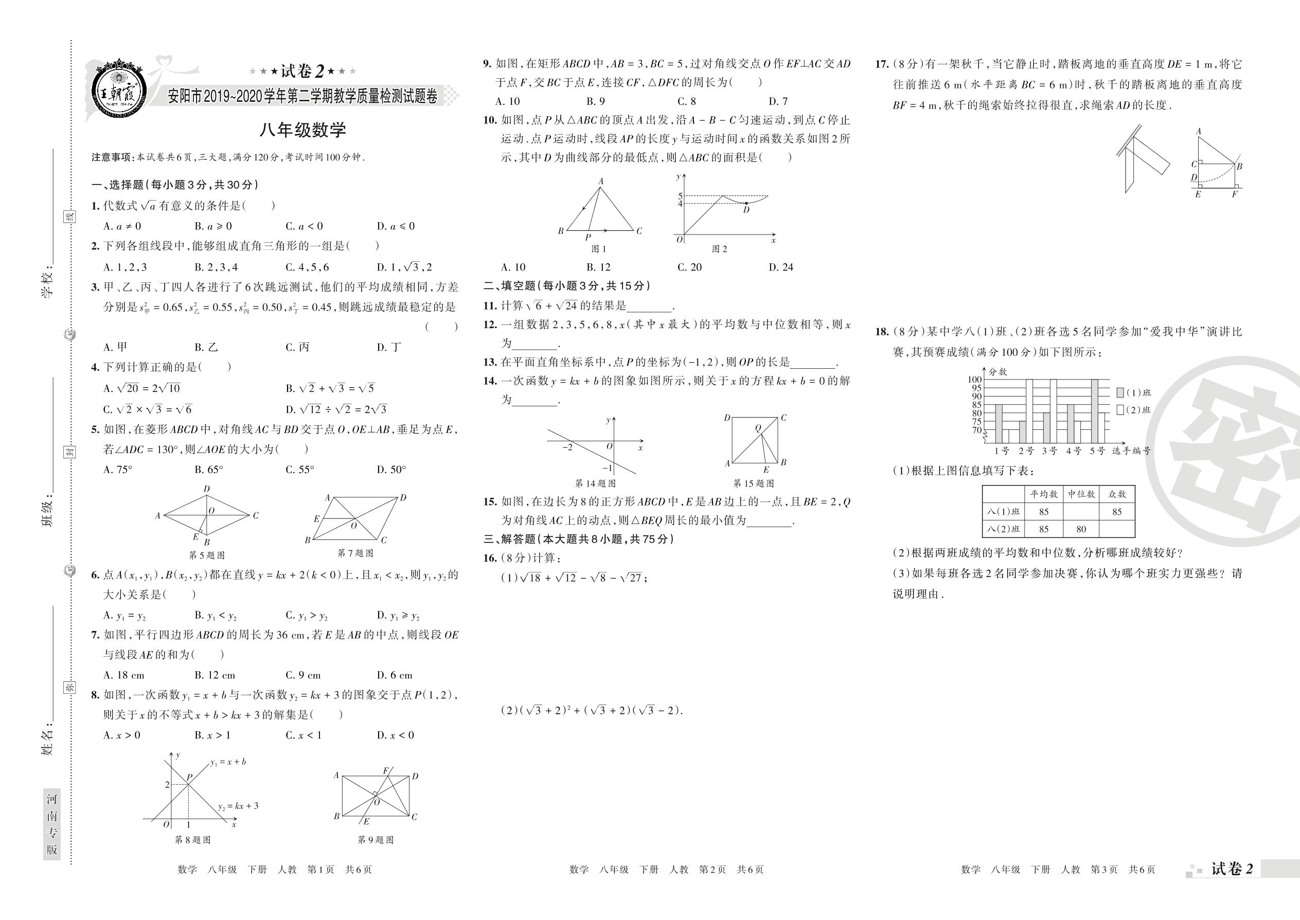 2019-2020学年第二学期安阳市八年级数学试卷(人教版)【2】