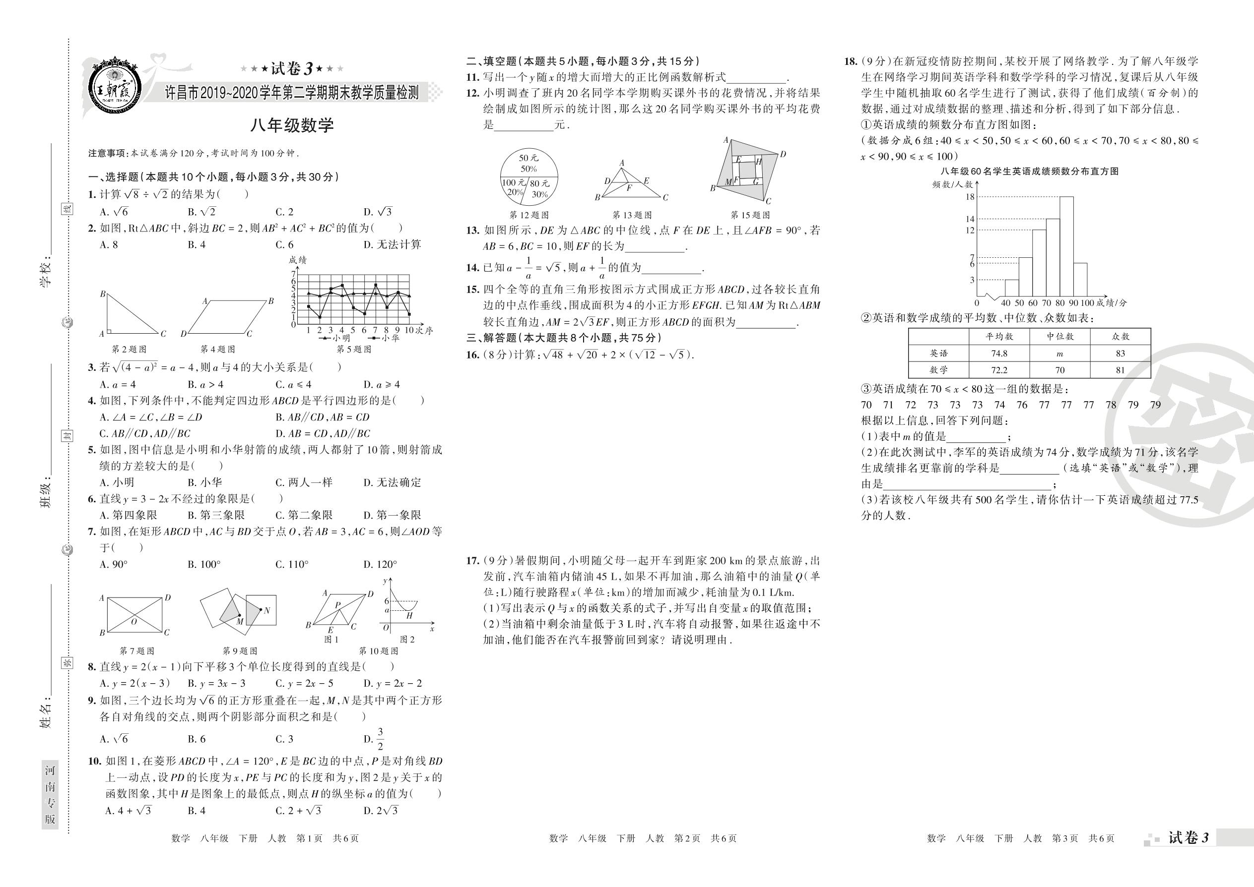 2019-2020学年第二学期许昌市八年级数学试卷(人教版)【3】