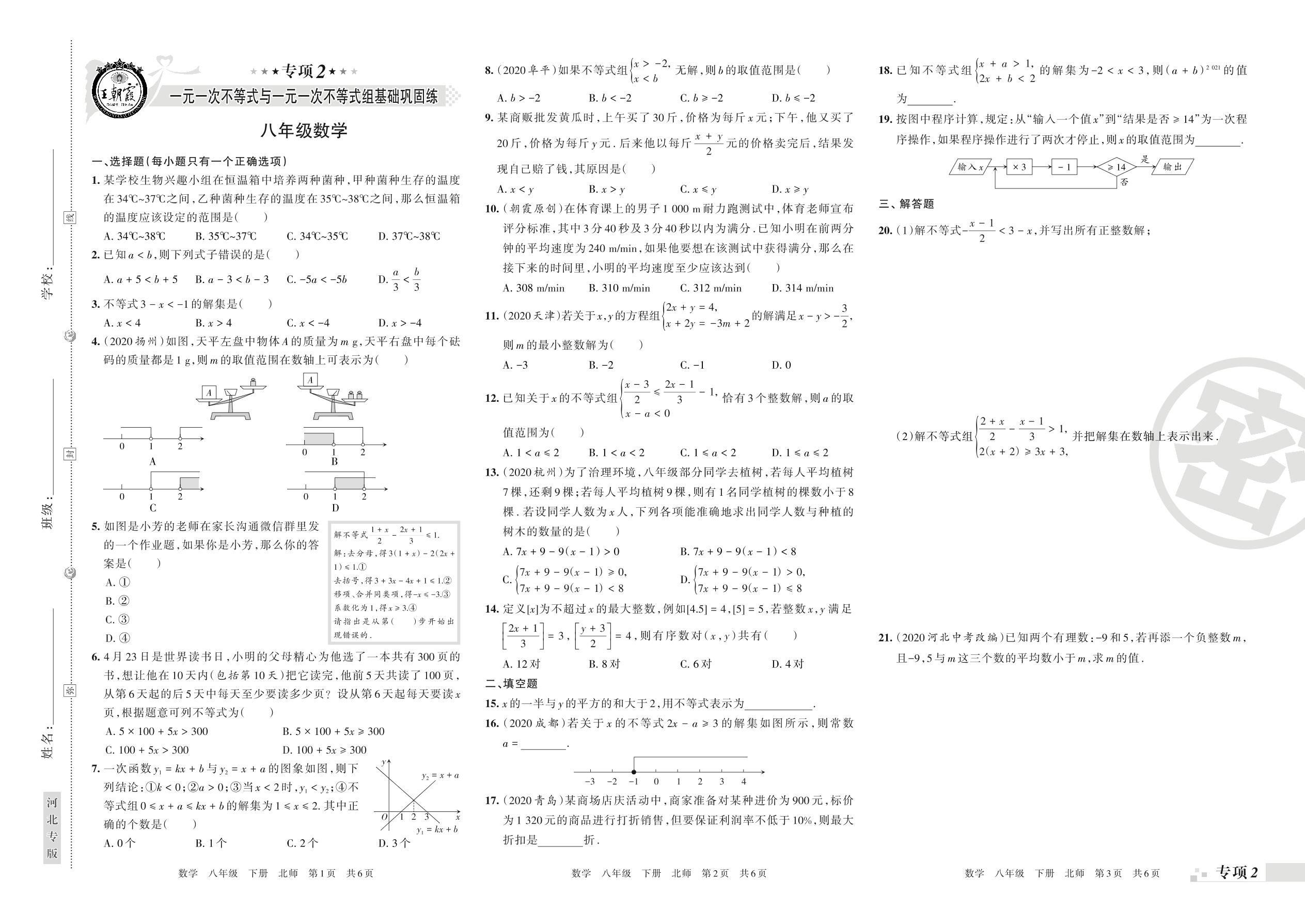 王朝霞期末专项卷——一元一次不等式与一元一次不等式组基础巩固练八年级下册数学(北师版)【0】