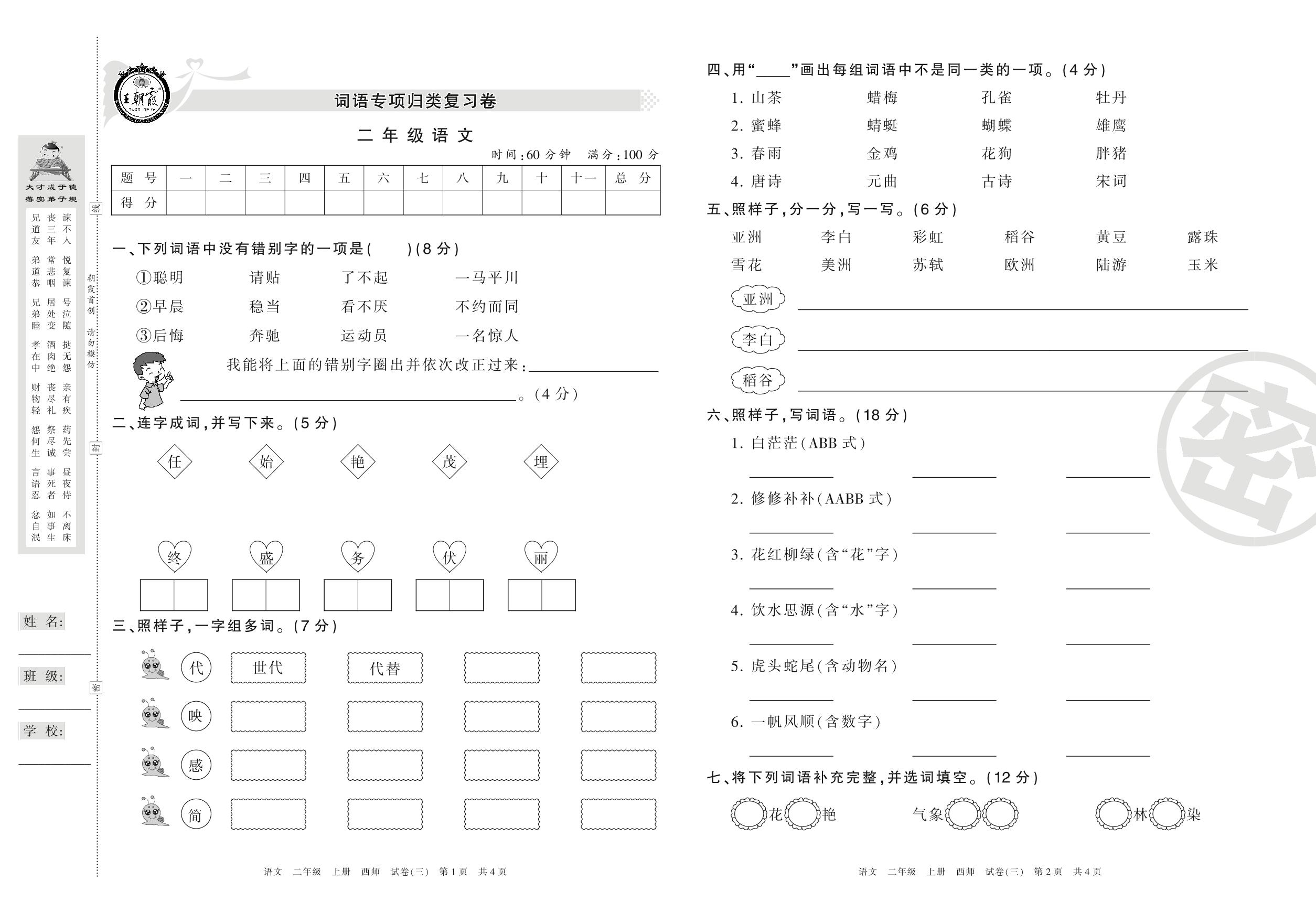 王朝霞期末专项卷二年级上册语文(西师版)_R21080174729【3】