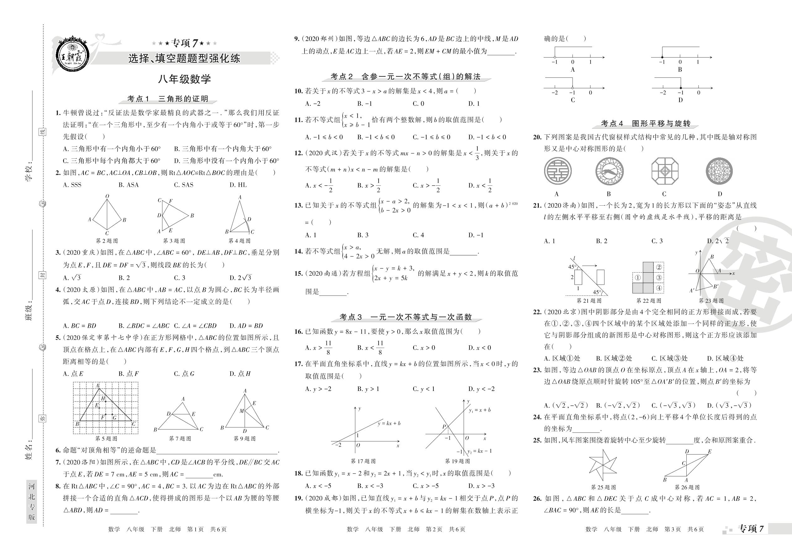 王朝霞期末专项卷——选择、填空题题型强化练八年级下册数学(北师版)【0】