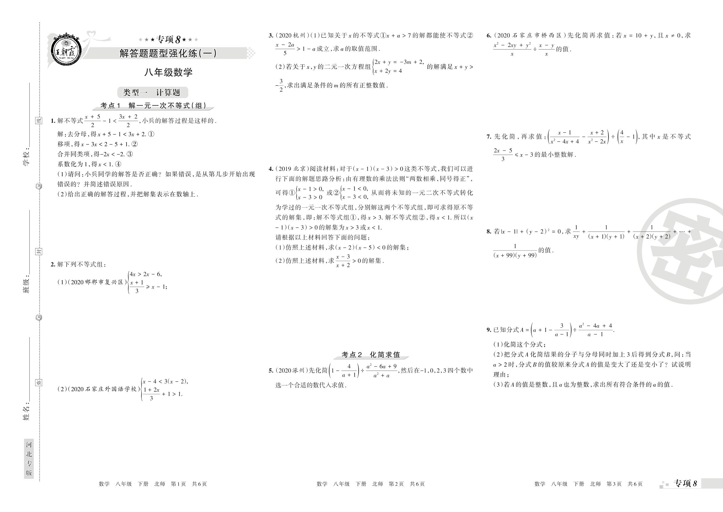 王朝霞期末专项卷——解答题题型强化练(一)八年级下册数学(北师版)【0】