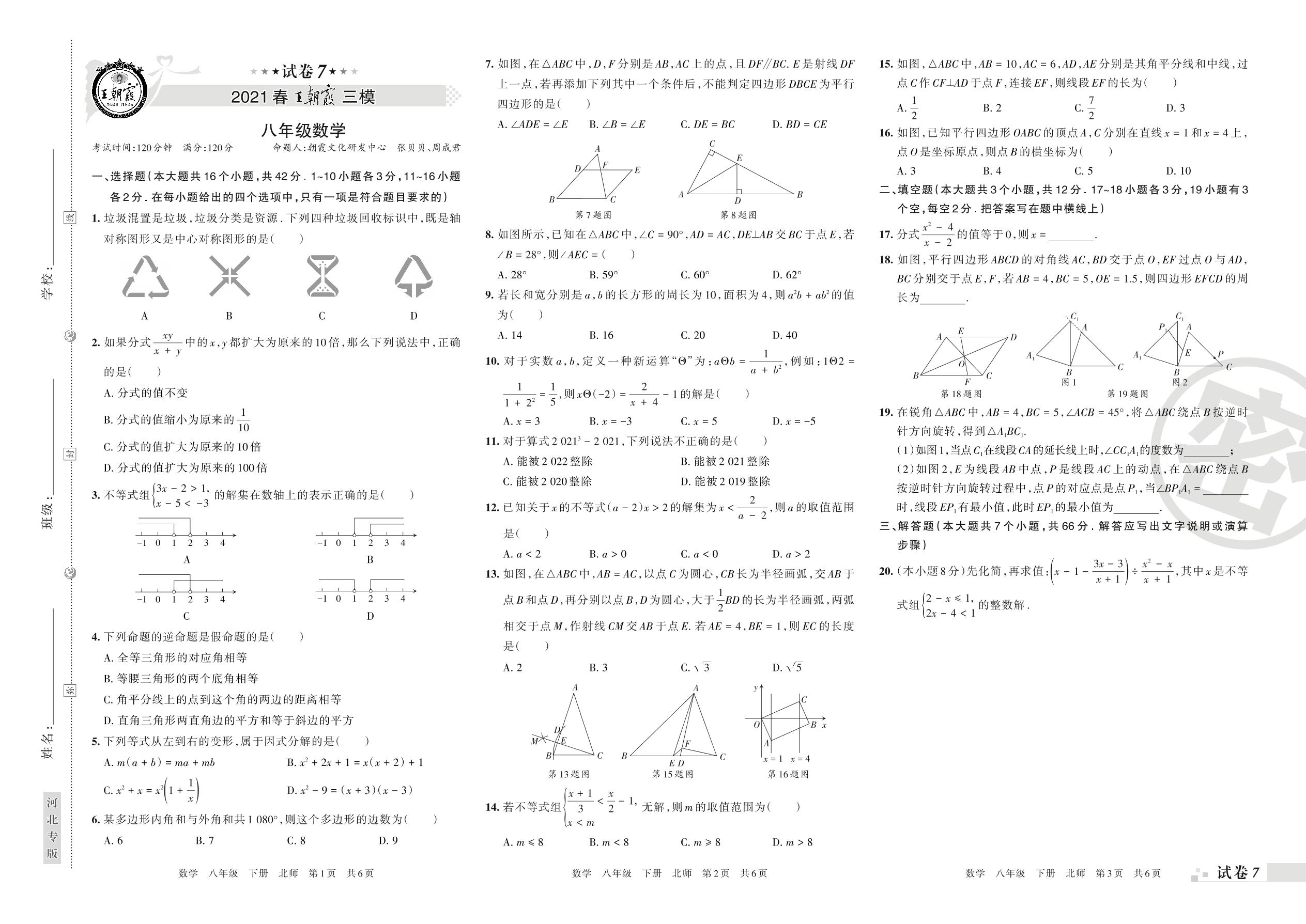 王朝霞期末模拟卷八年级下册数学(北师版)_R21080690549【7】