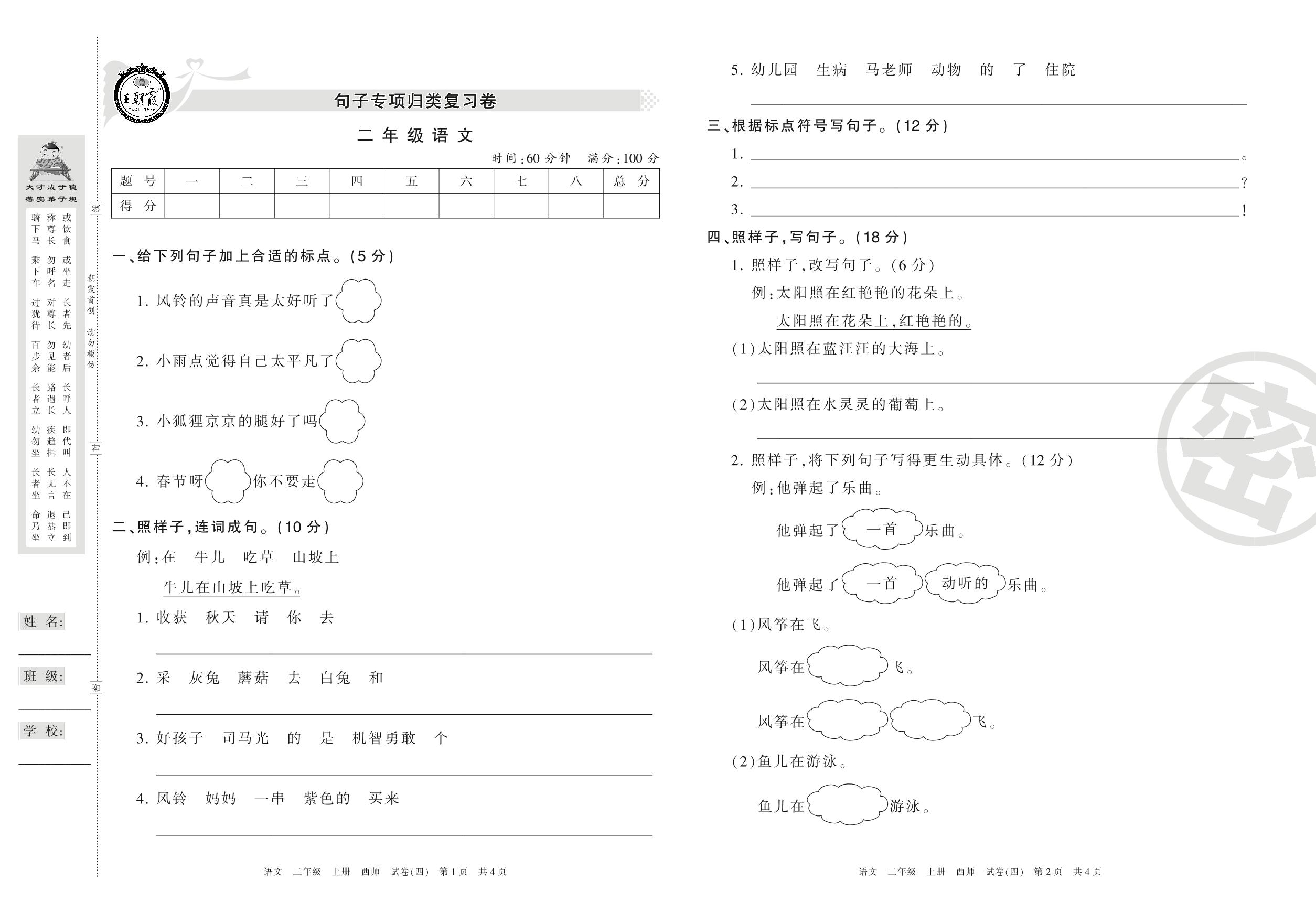 王朝霞期末专项卷二年级上册语文(西师版)_R21080174731【4】