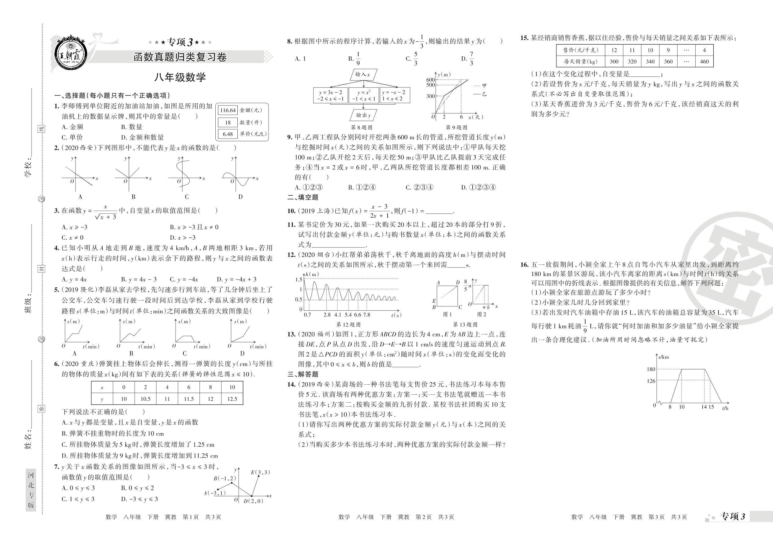 王朝霞期末专项卷——函数、一次函数的图像和性质真题归类复习八年级下册数学(冀教版)【0】