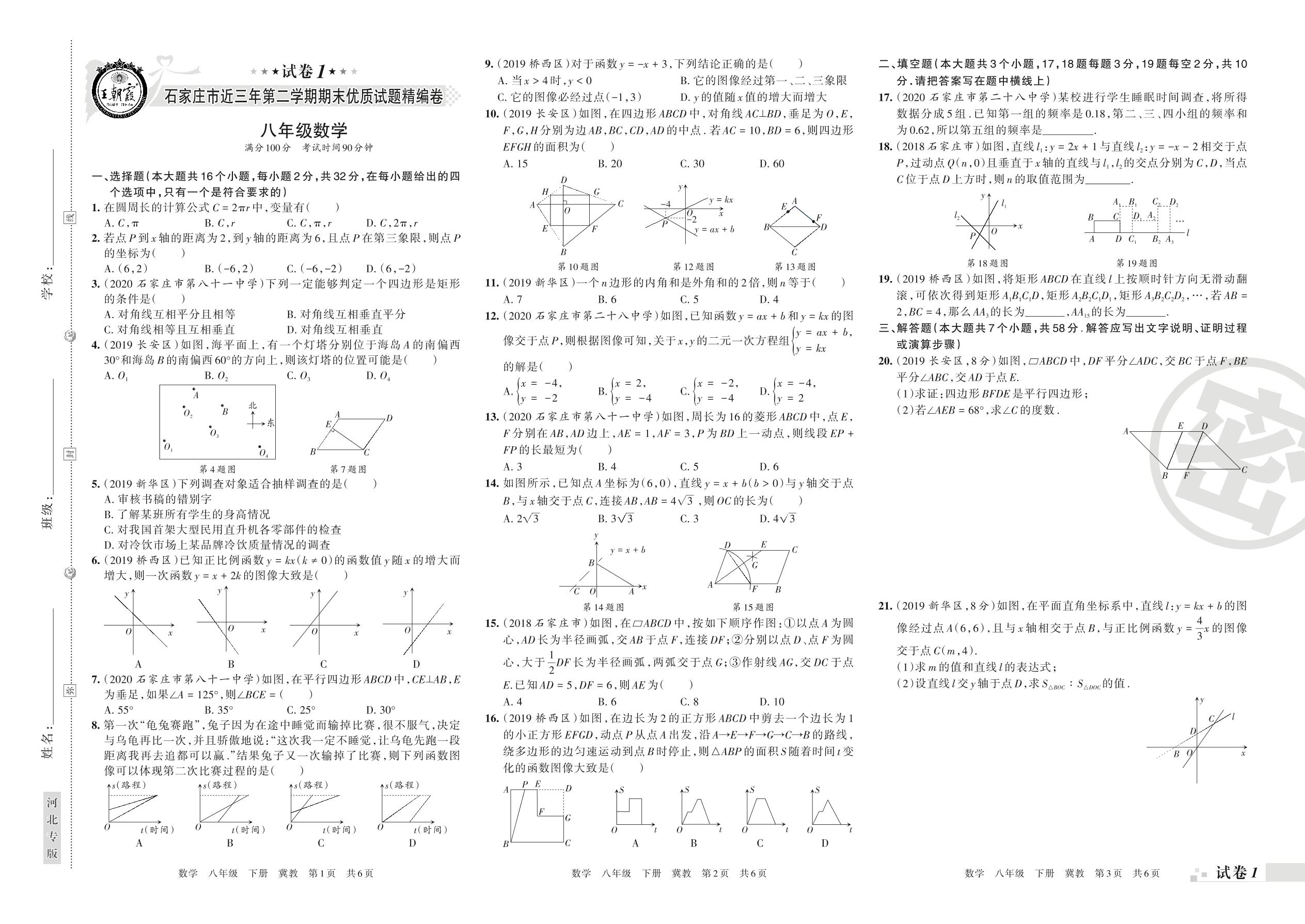 石家庄市近三年优质试题精编卷八年级下册数学(冀教版)【1】