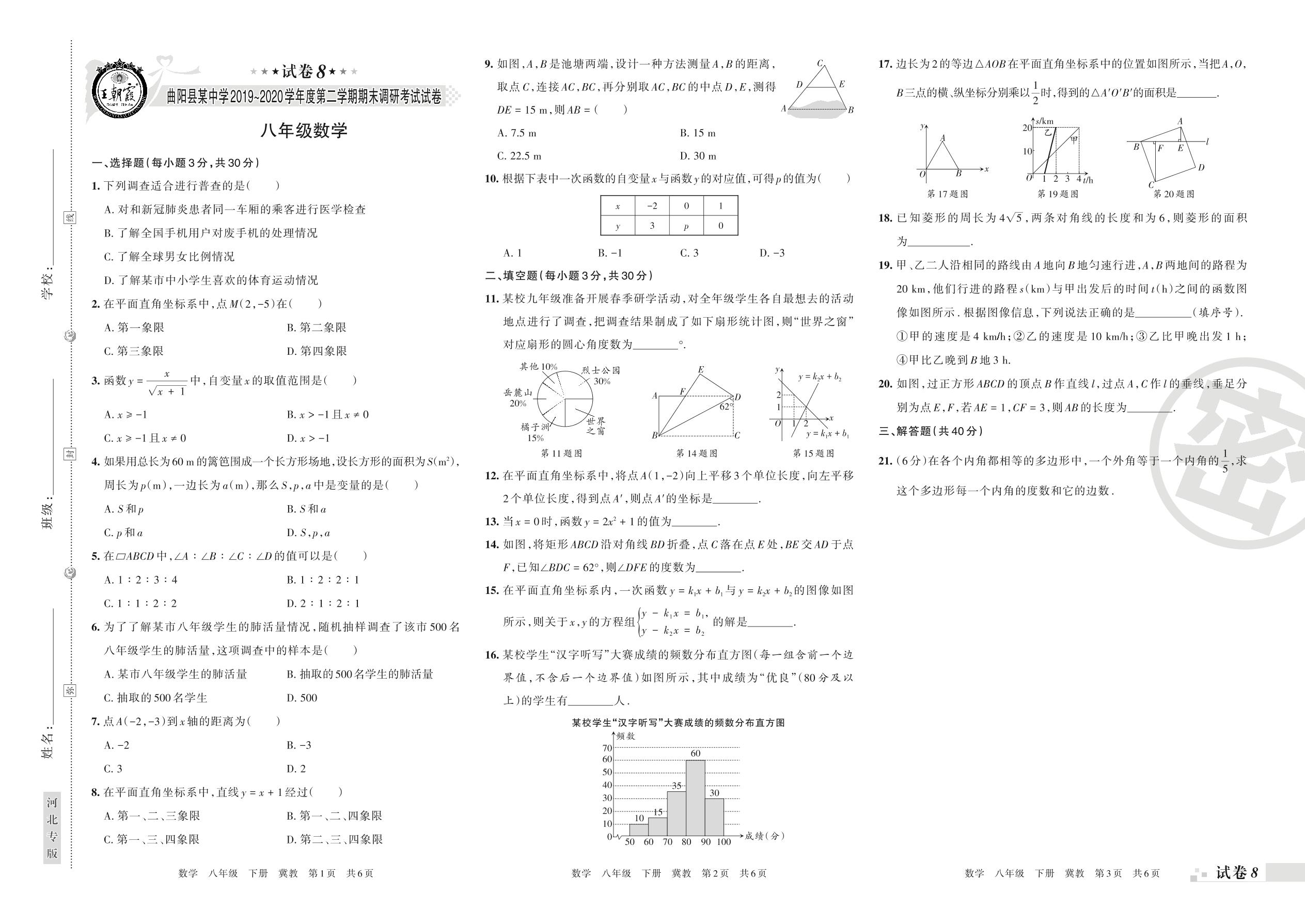 2019-2020学年第二学期保定市曲阳县八年级数学试卷(冀教版)【8】