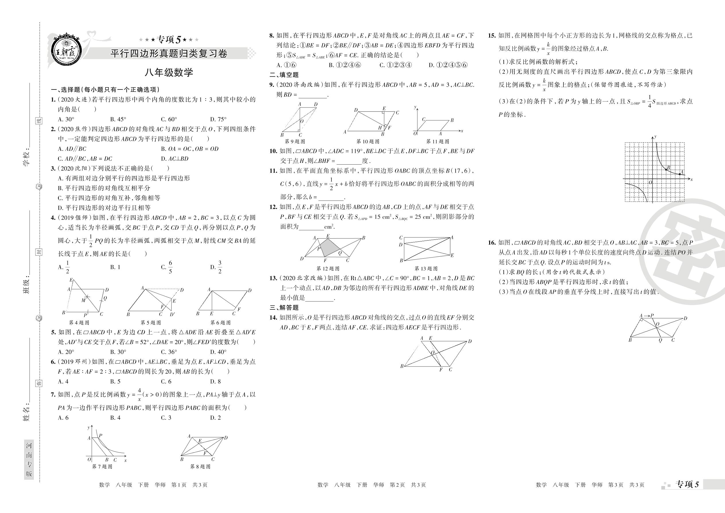 王朝霞期末专项卷——平行四边形、特殊的平行四边形真题归类复习八年级下册数学(华师版)_R21080690800【0】