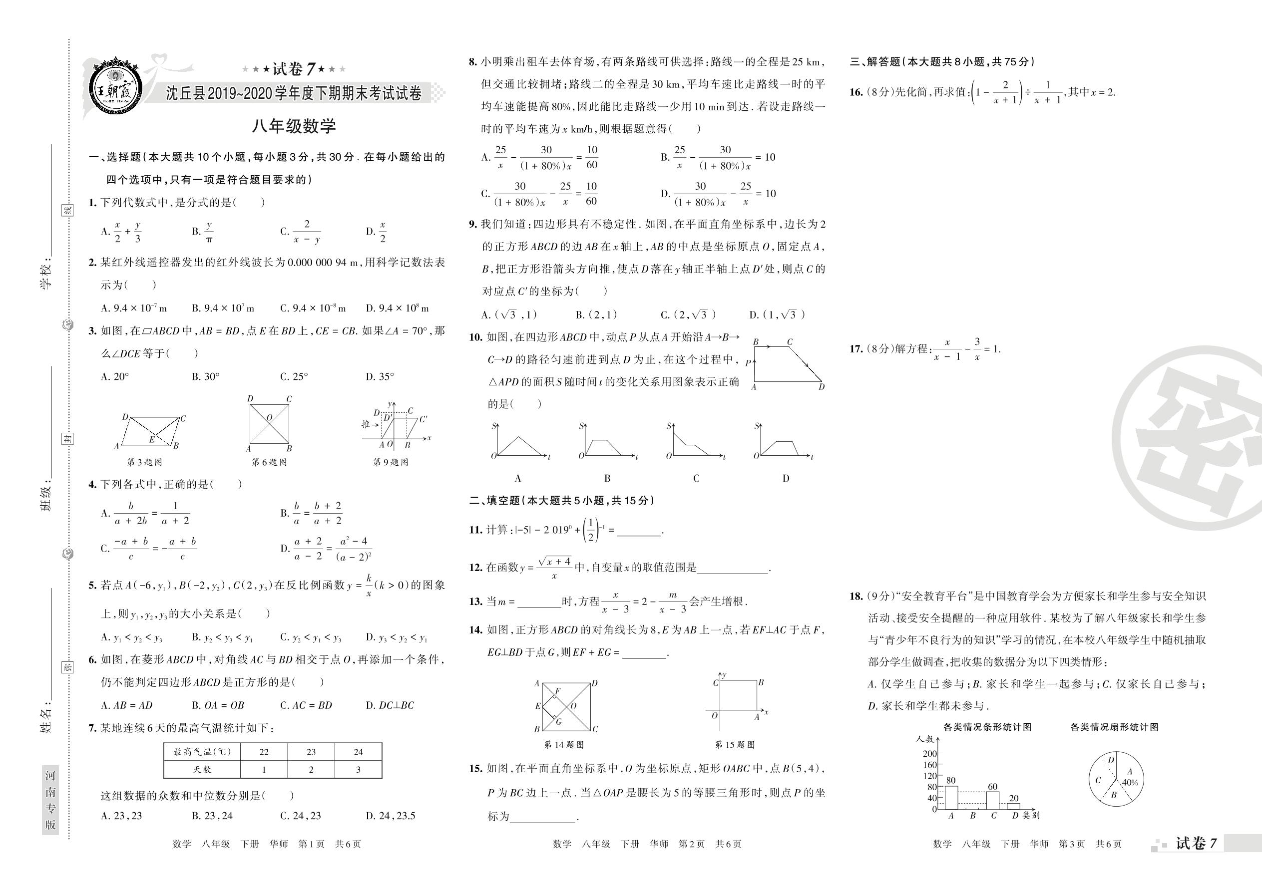 2019-2020学年第二学期周口市沈丘县八年级数学试卷(华师版)【7】