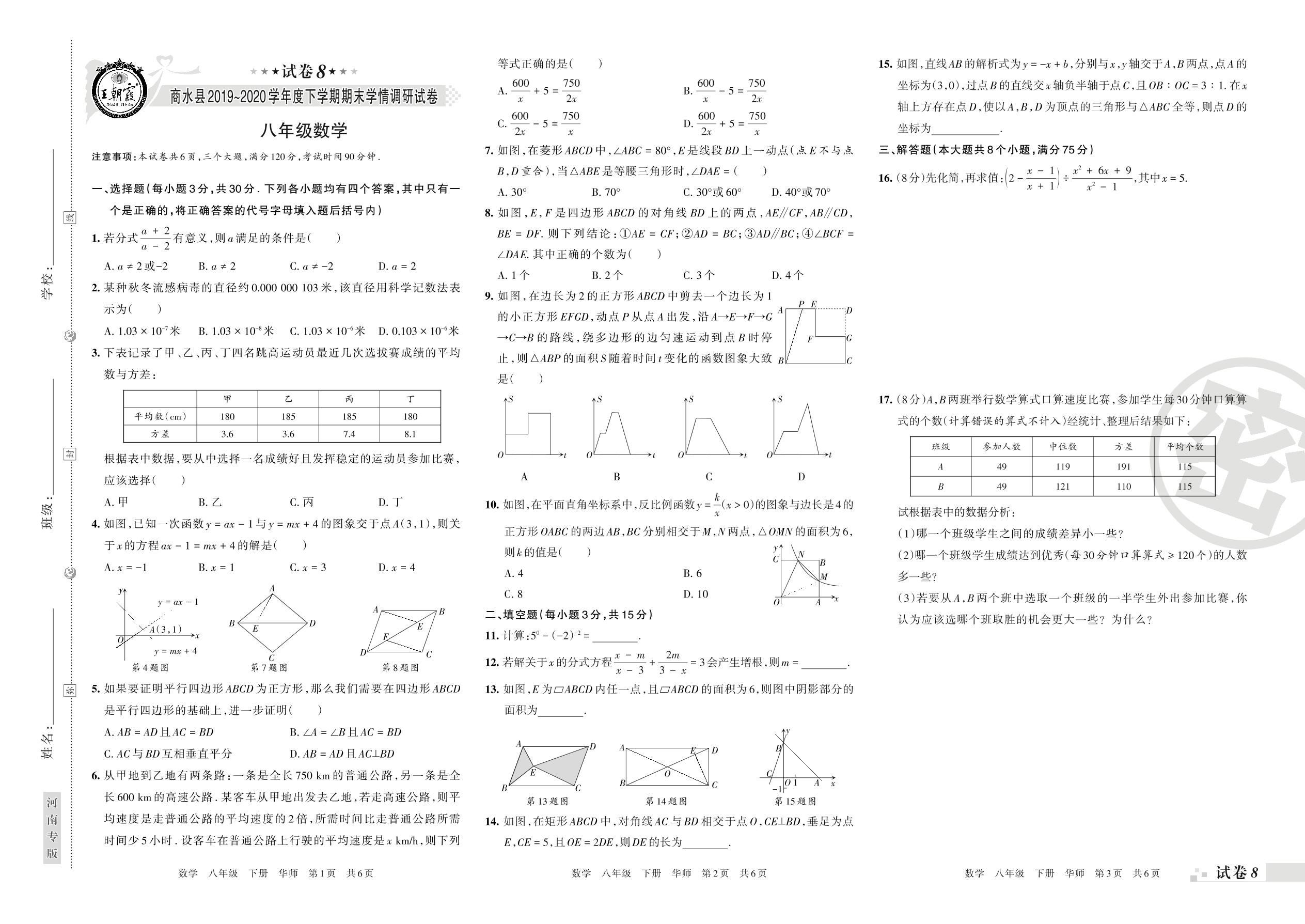 2019-2020学年第二学期周口市商水县八年级数学试卷(华师版)【8】