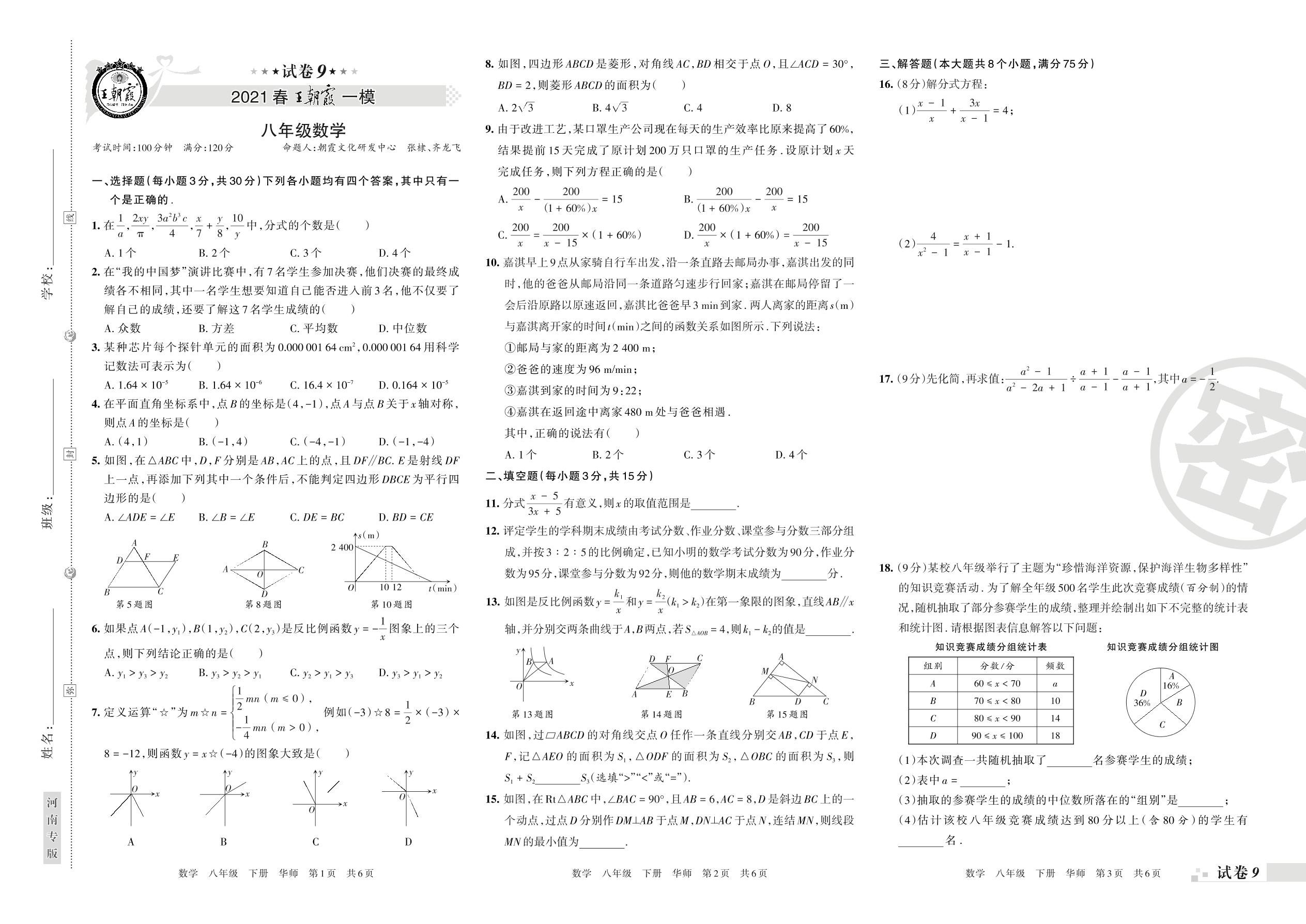 王朝霞期末模拟卷八年级下册数学(华师版)_R21080690913【9】
