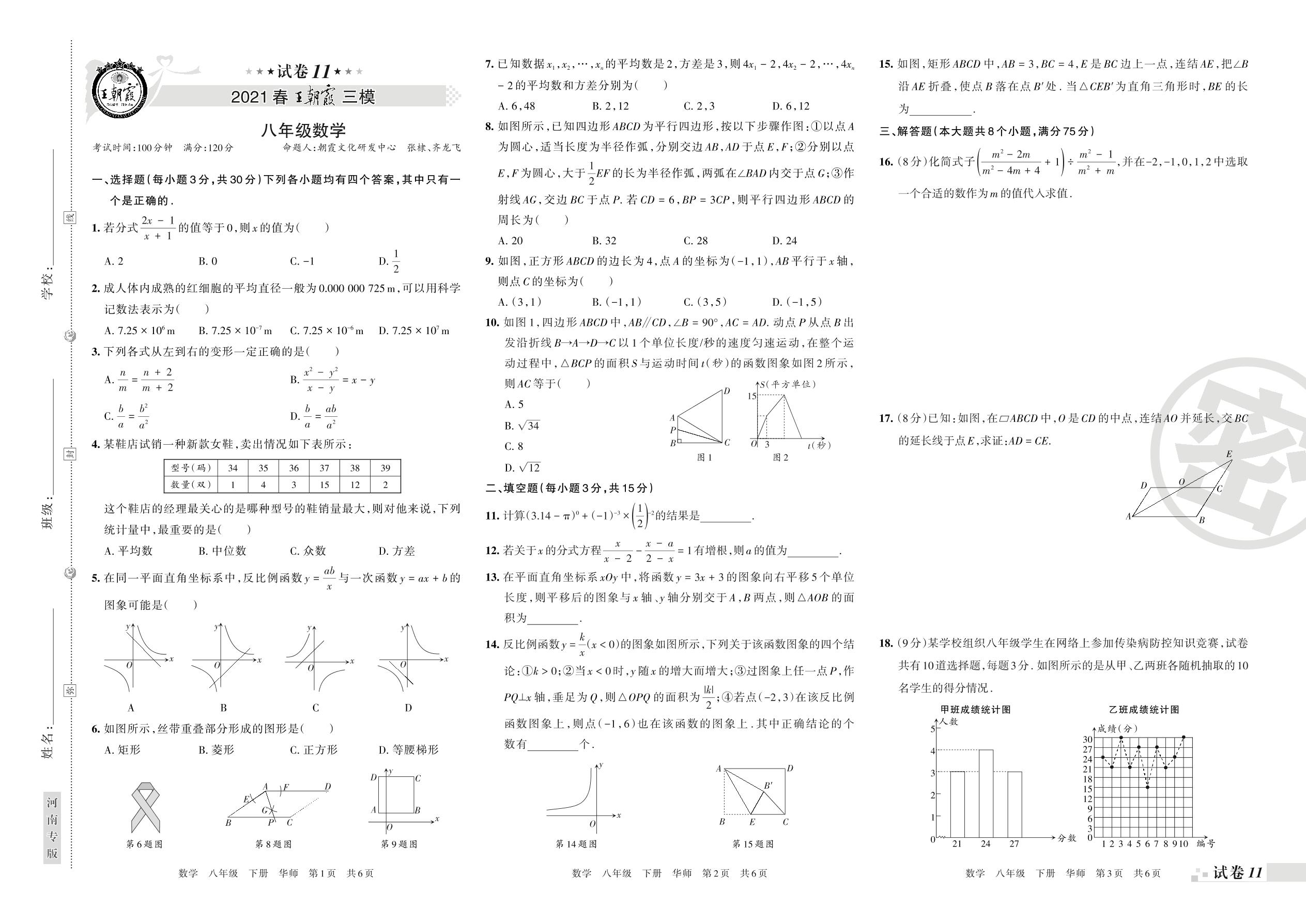 王朝霞期末模拟卷八年级下册数学(华师版)_R21080690929【11】