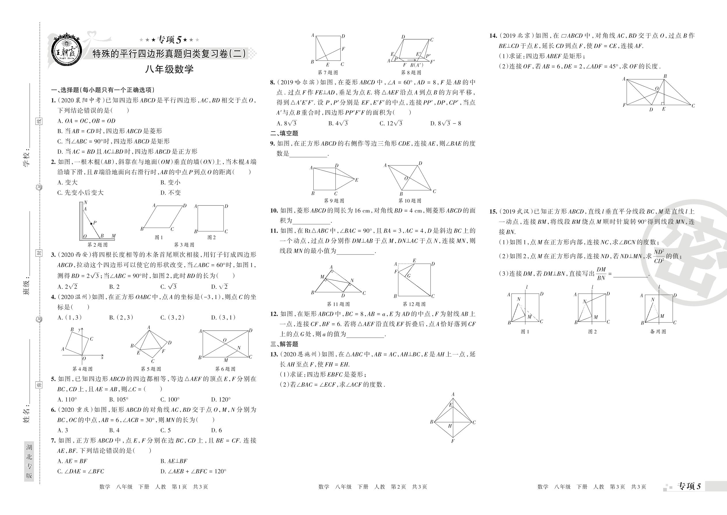 王朝霞期末专项卷——特殊的平行四边形(二)、函数及一次函数的图象与性质真题归类复习八年级下册数学(人教版)_R21080691430【0】