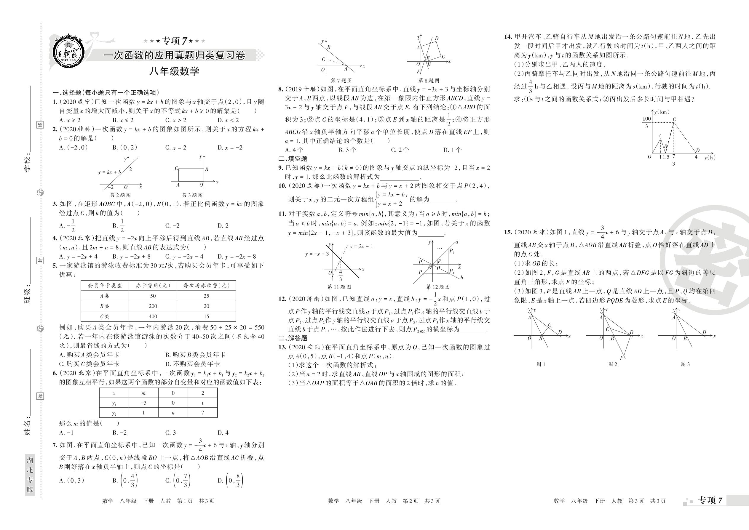 王朝霞期末专项卷——一次函数的应用、数据的分析真题归类复习八年级下册数学(人教版)_R21080691437【0】