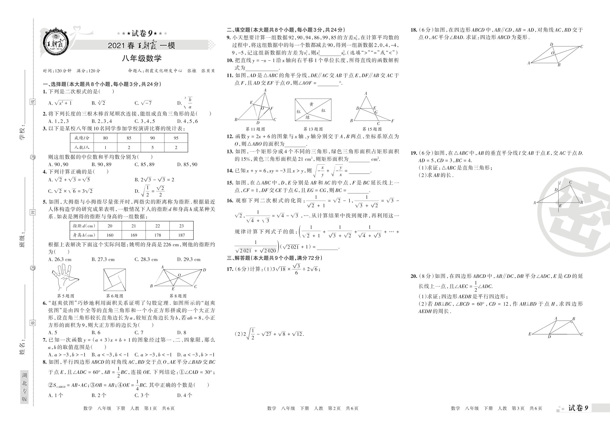 王朝霞期末模拟卷八年级下册数学(人教版)_R21080691538【9】