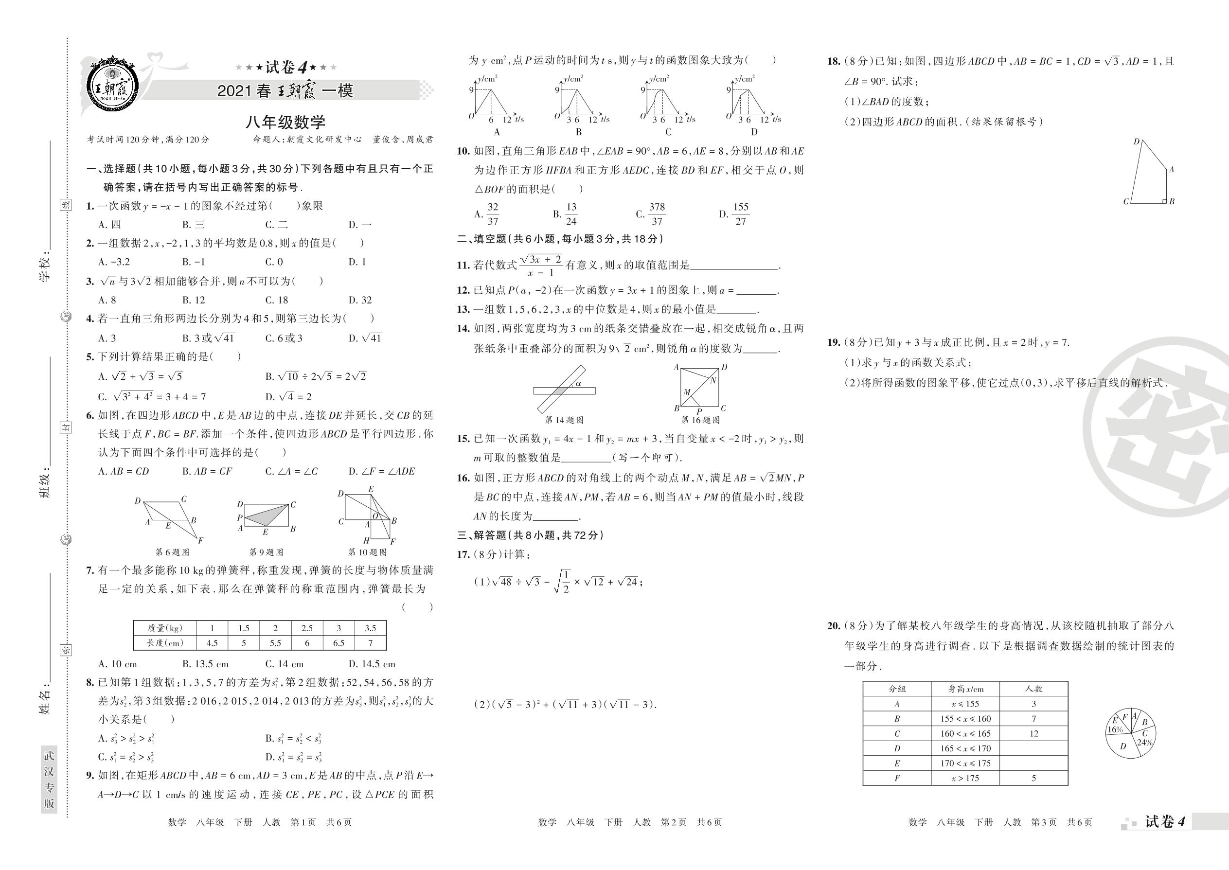 王朝霞期末模拟卷八年级下册数学(人教版)【4】