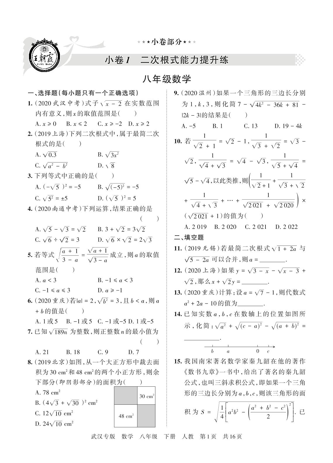 王朝霞期末小卷八年级下册数学(人教版)_R21080691817【0】