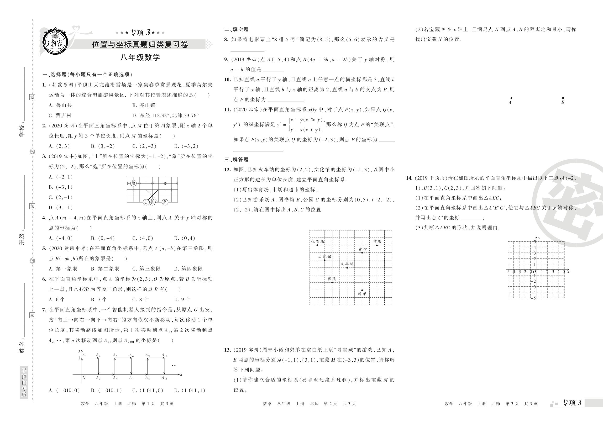 王朝霞期末专项卷——位置与坐标、函数与一次函数的图象与性质真题归类复习八年级上册数学(北师版)