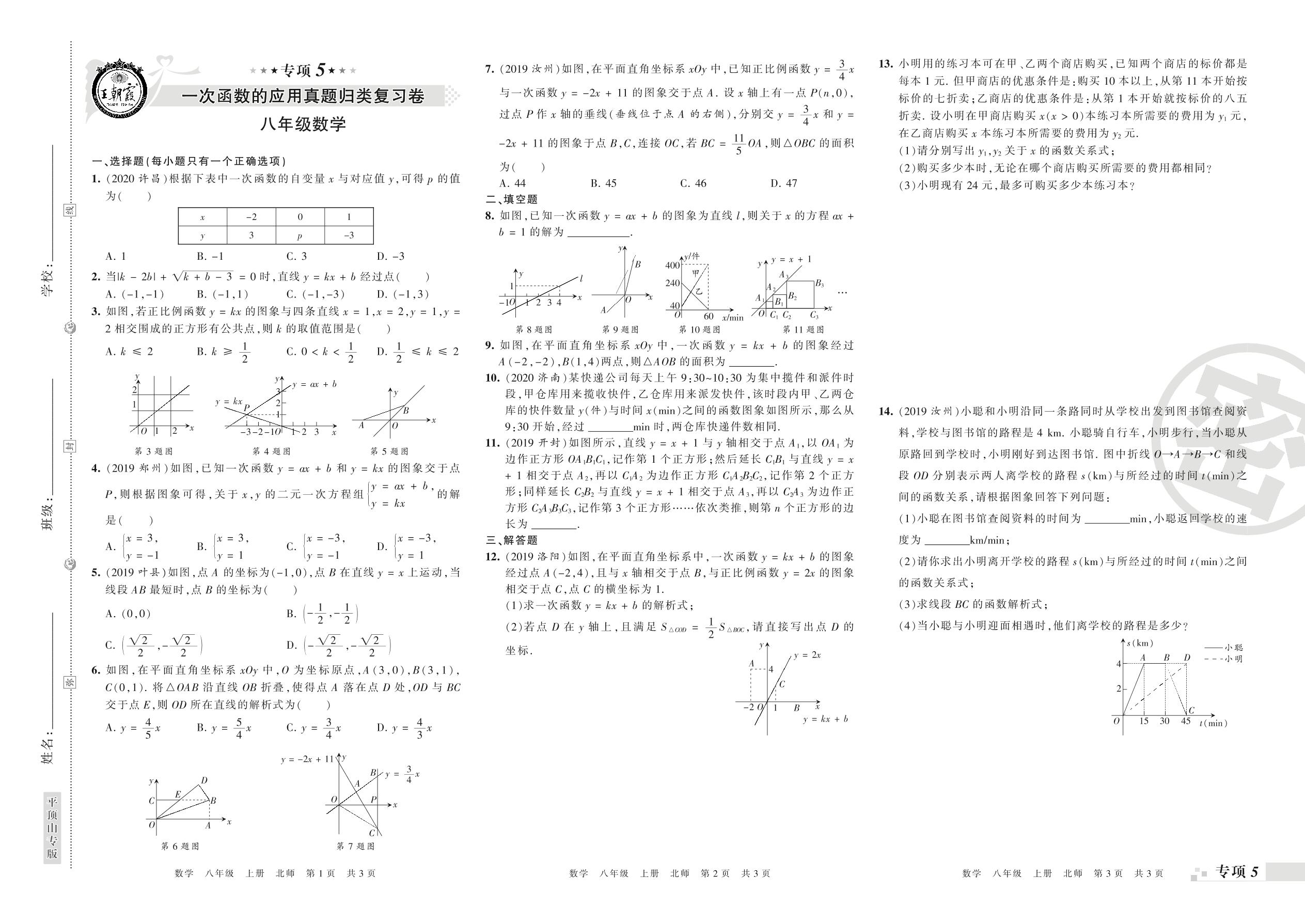 王朝霞期末专项卷——一次函数的应用、二元一次方程租真题归类复习八年级上册数学(北师版)