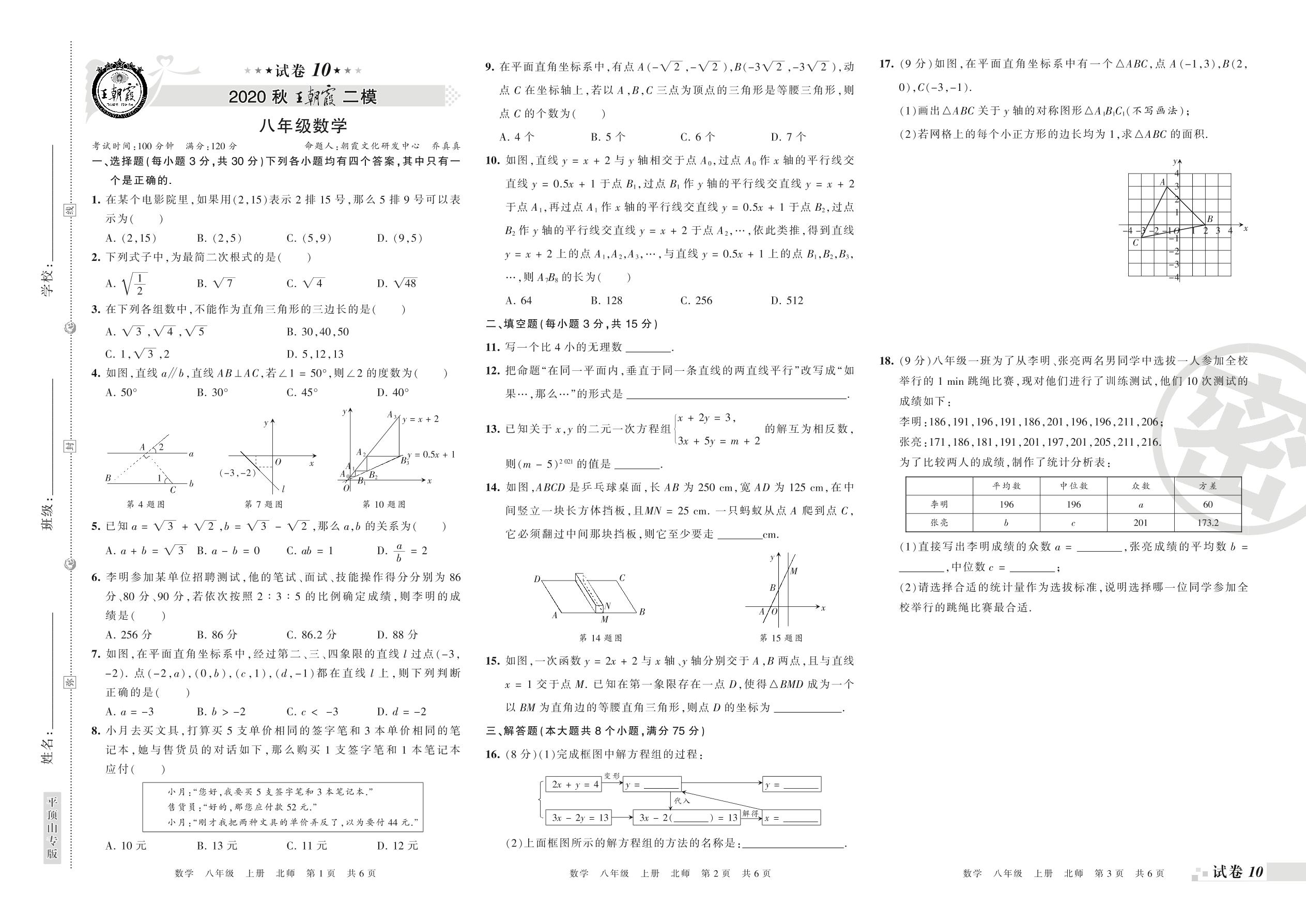 王朝霞期末模拟卷八年级上册数学(北师版)_R21080692118【10】