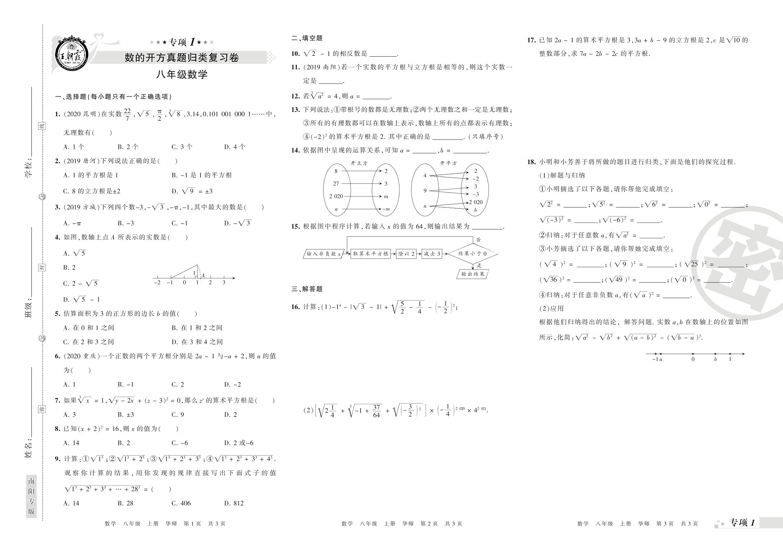 王朝霞期末专项卷——数的开方、整式的乘除真题归类复习卷八年级上册数学(华师版)