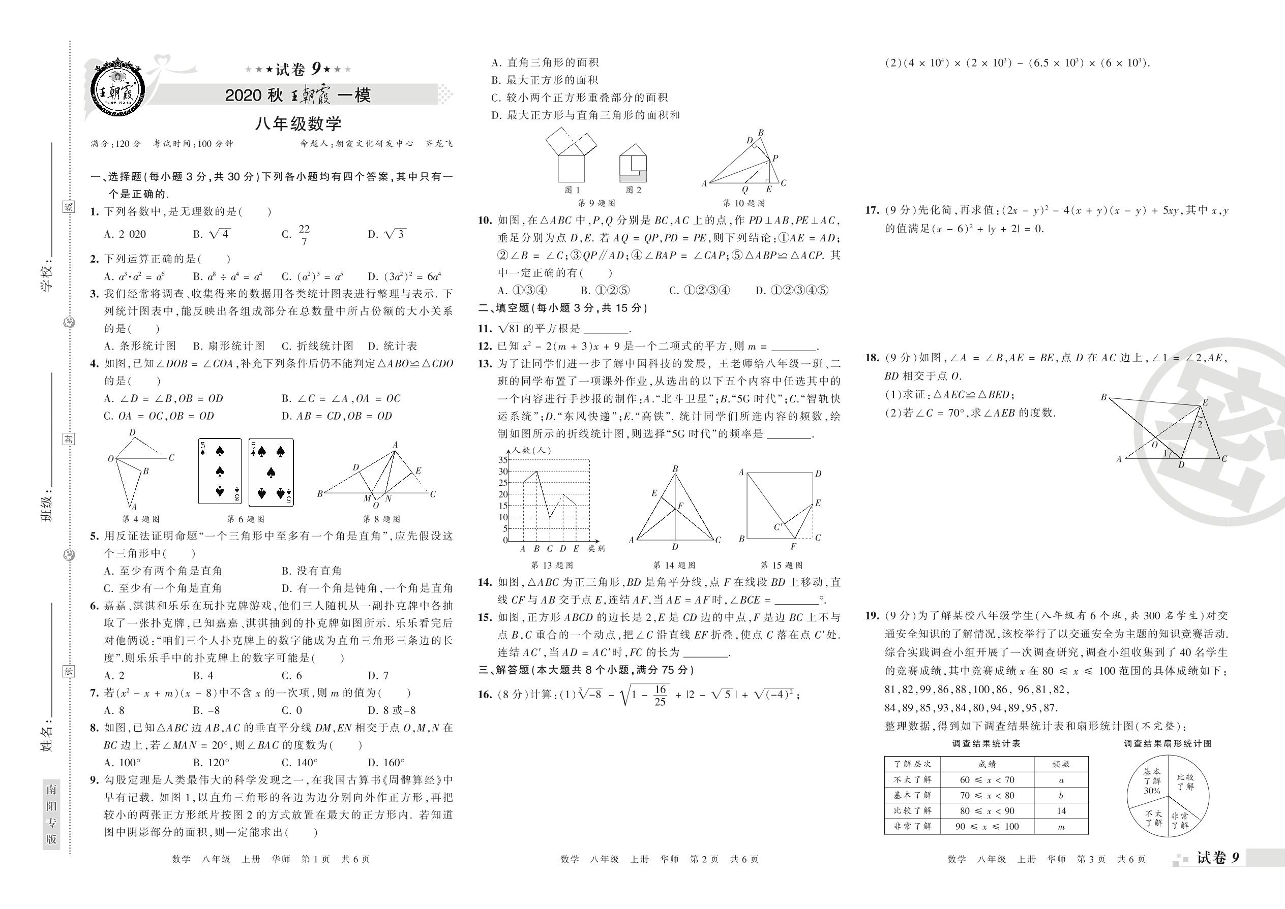 王朝霞期末模拟卷八年级上册数学(华师版)_R21080692236【9】