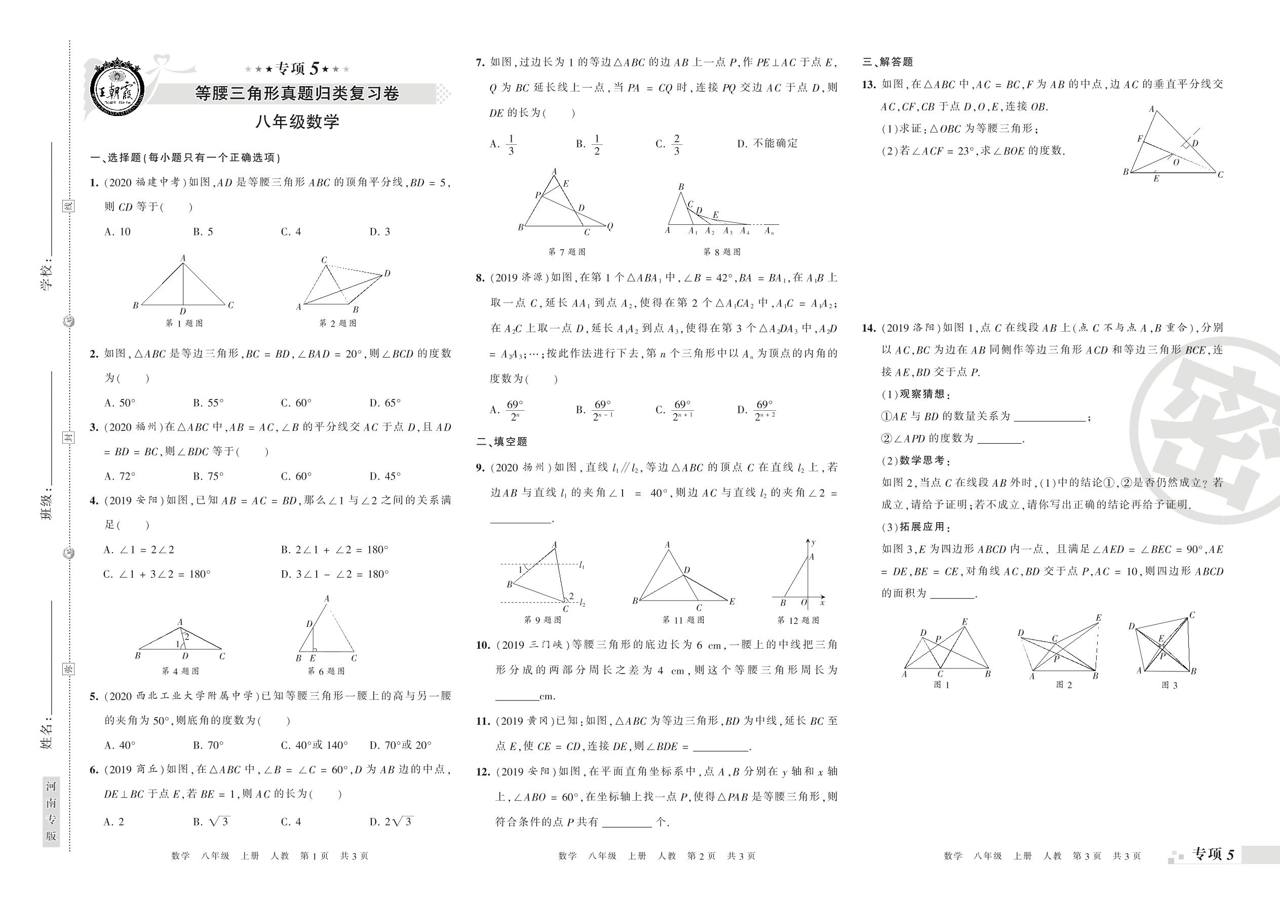 王朝霞期末专项卷——等腰三角形、整式的乘法与因式分解真题归类复习八年级上册数学(人教版)_R21080692308【0】