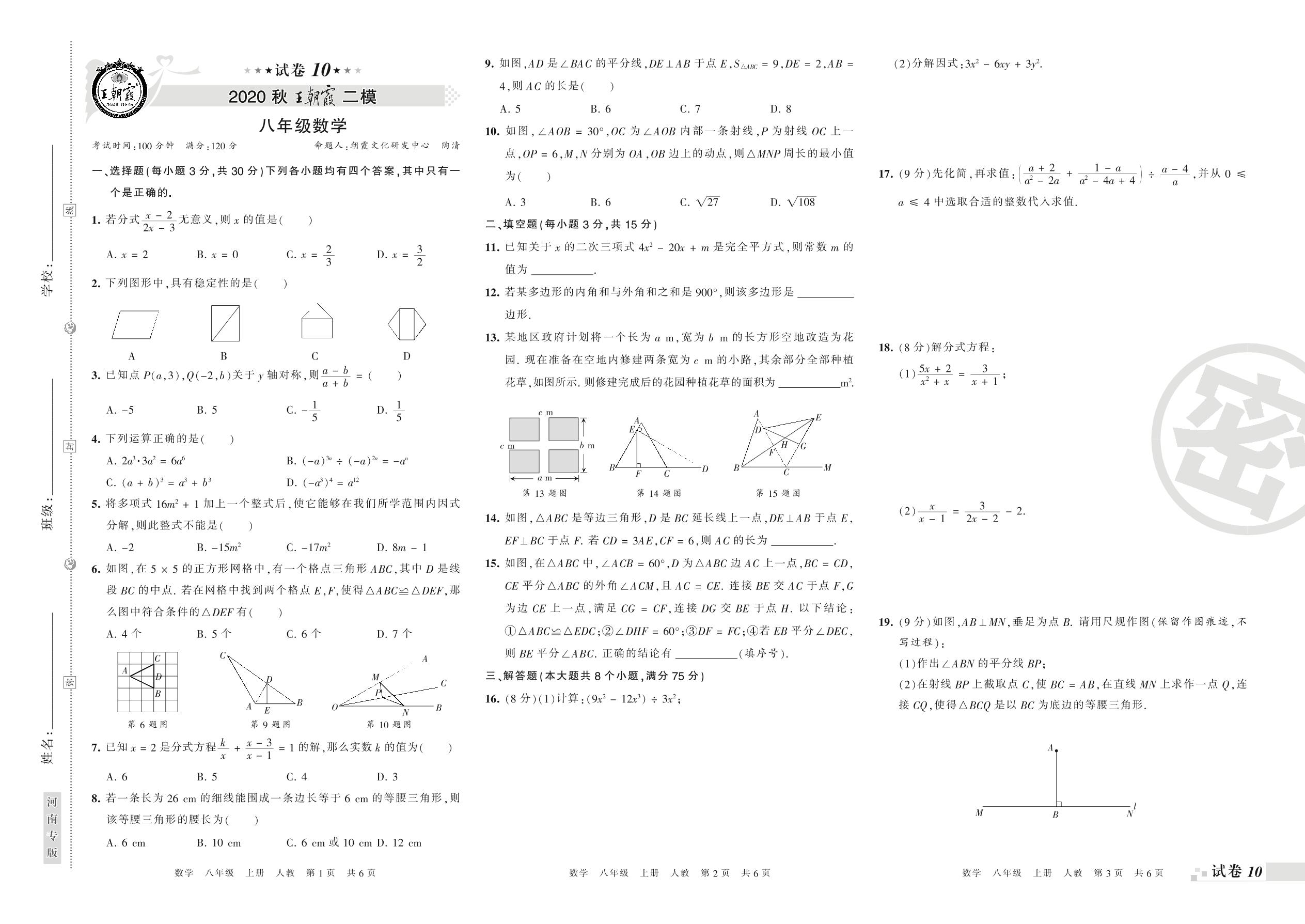 王朝霞期末模拟卷八年级上册数学(人教版)_R21080692350【10】