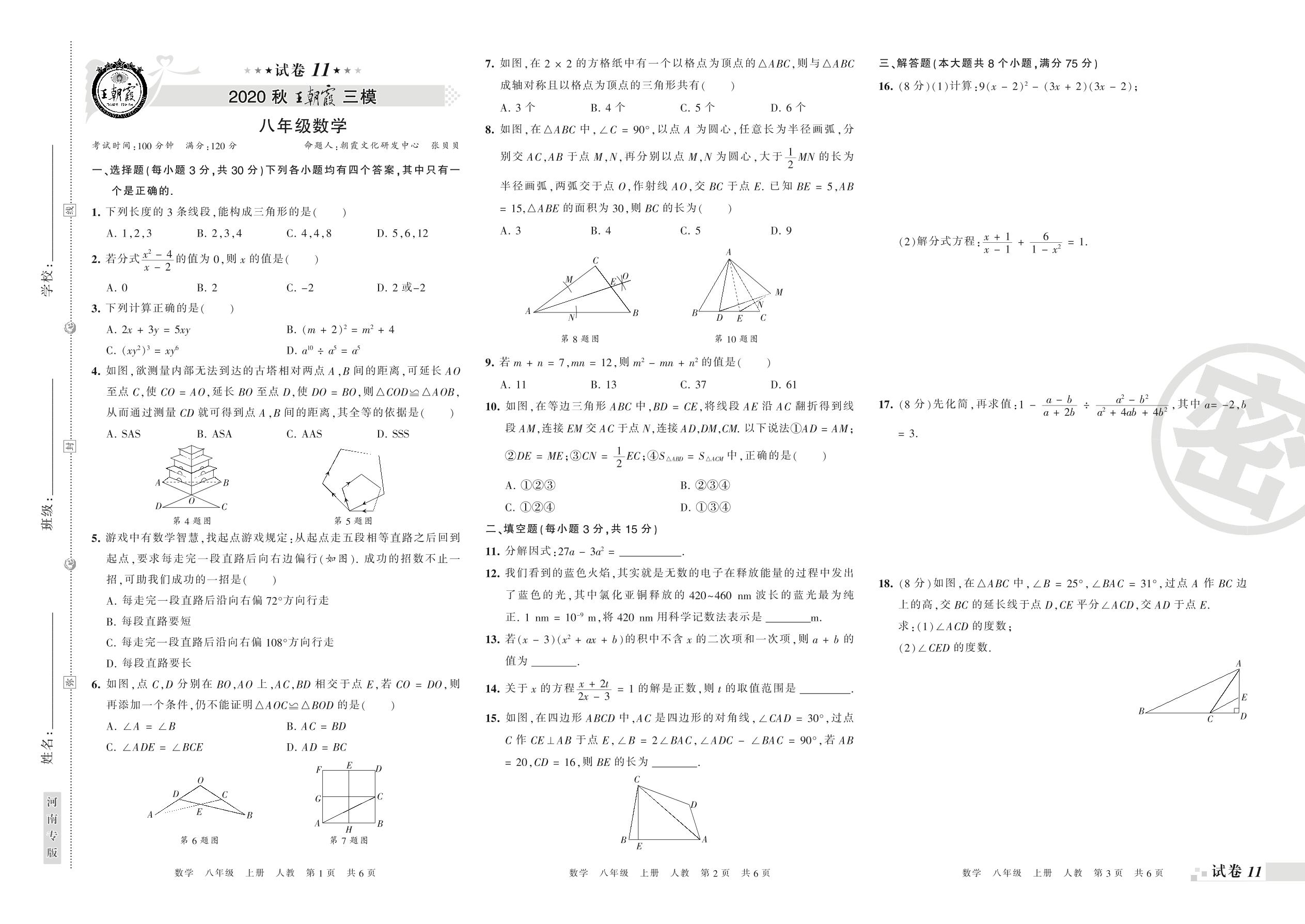 王朝霞期末模拟卷八年级上册数学(人教版)_R21080692355【11】