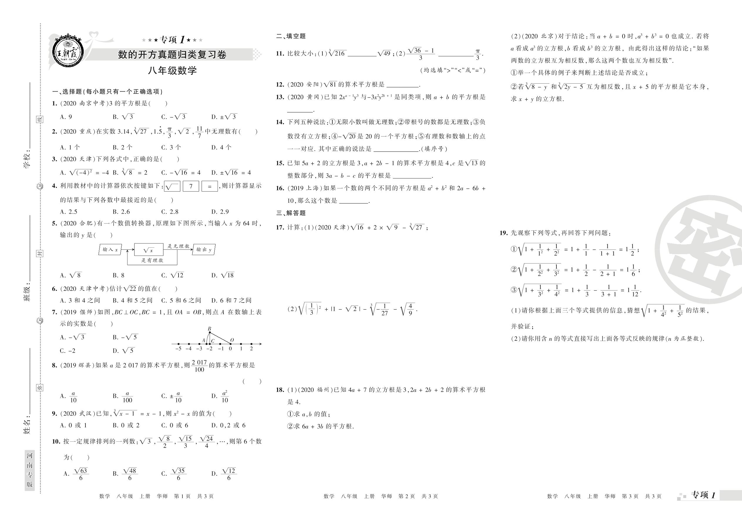 王朝霞期末专项卷——数的开方、整式的乘除真题归类复习八年级上册数学(华师版)【0】