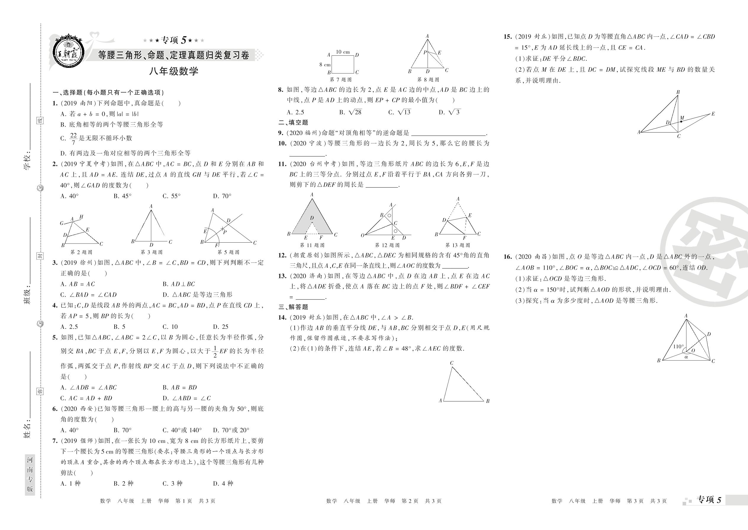 王朝霞期末专项卷——等腰三角形、命题、定理、勾股定理真题归类复习八年级上册数学(华师版)【0】