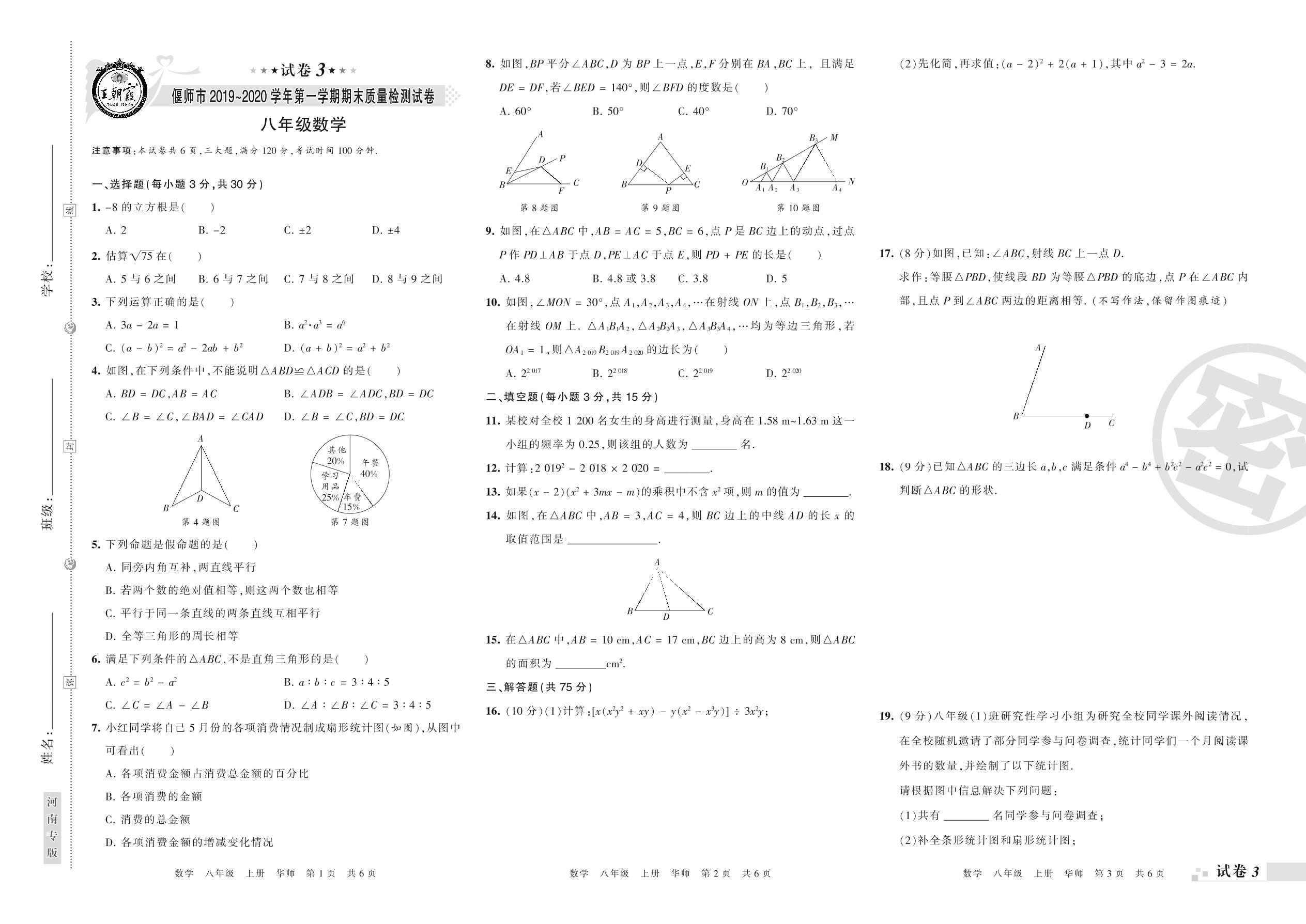 2019-2020学年第一学期偃师市八年级数学试卷(华师版)【3】