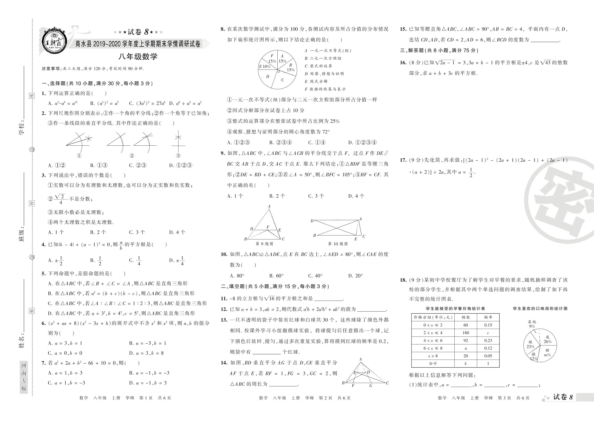 2019-2020学年第一学期周口市商水县八年级数学试卷(华师版)【8】