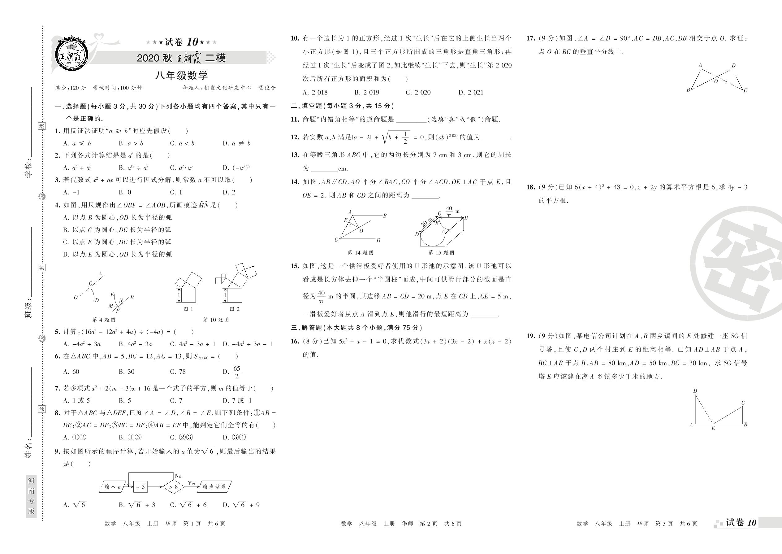王朝霞期末模拟卷八年级上册数学(华师版)_R21080692501【10】