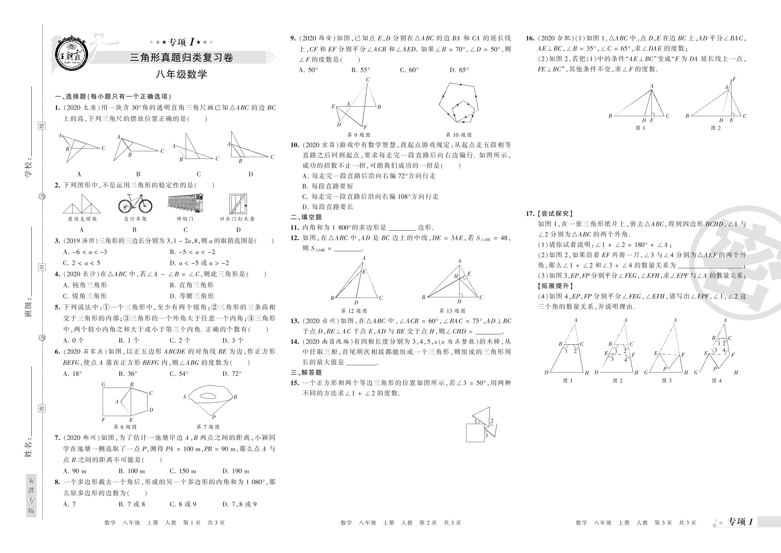 王朝霞期末专项卷——三角形、全等三角形真题归类复习八年级上册数学(人教版)