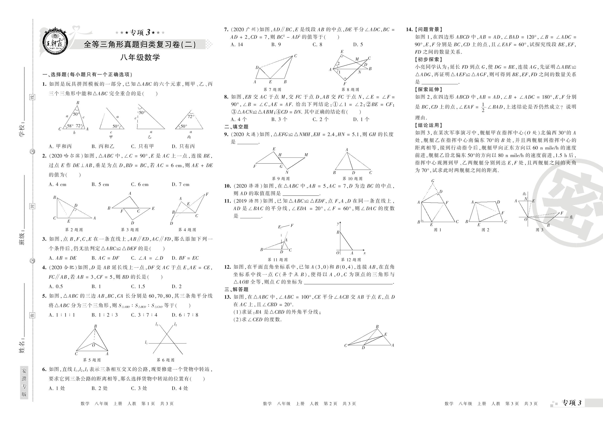 王朝霞期末专项卷——全等三角形、轴对称真题归类复习八年级上册数学(人教版)