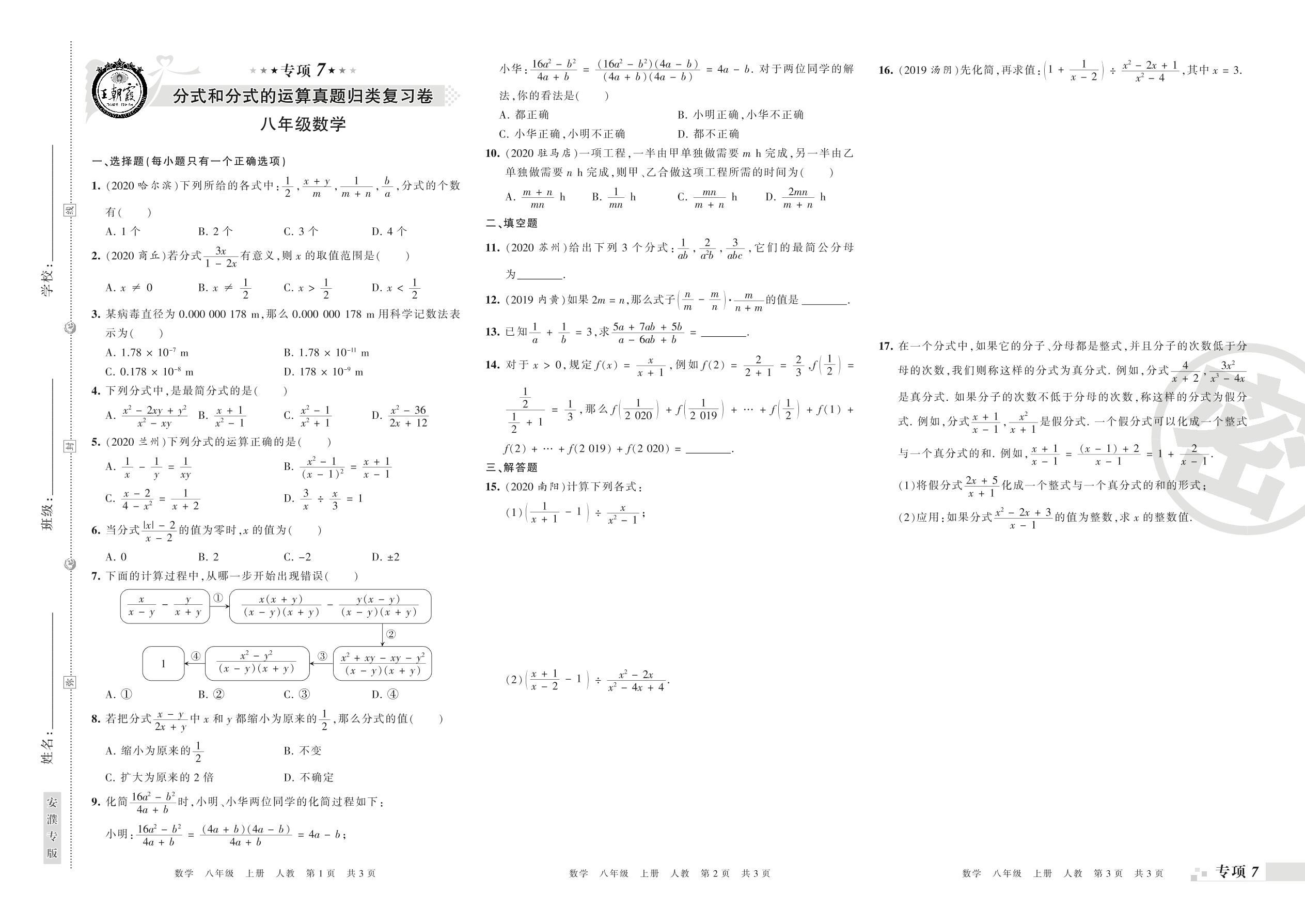 王朝霞期末专项卷——分式和分式的运算、分式方程真题归类复习八年级上册数学(人教版)