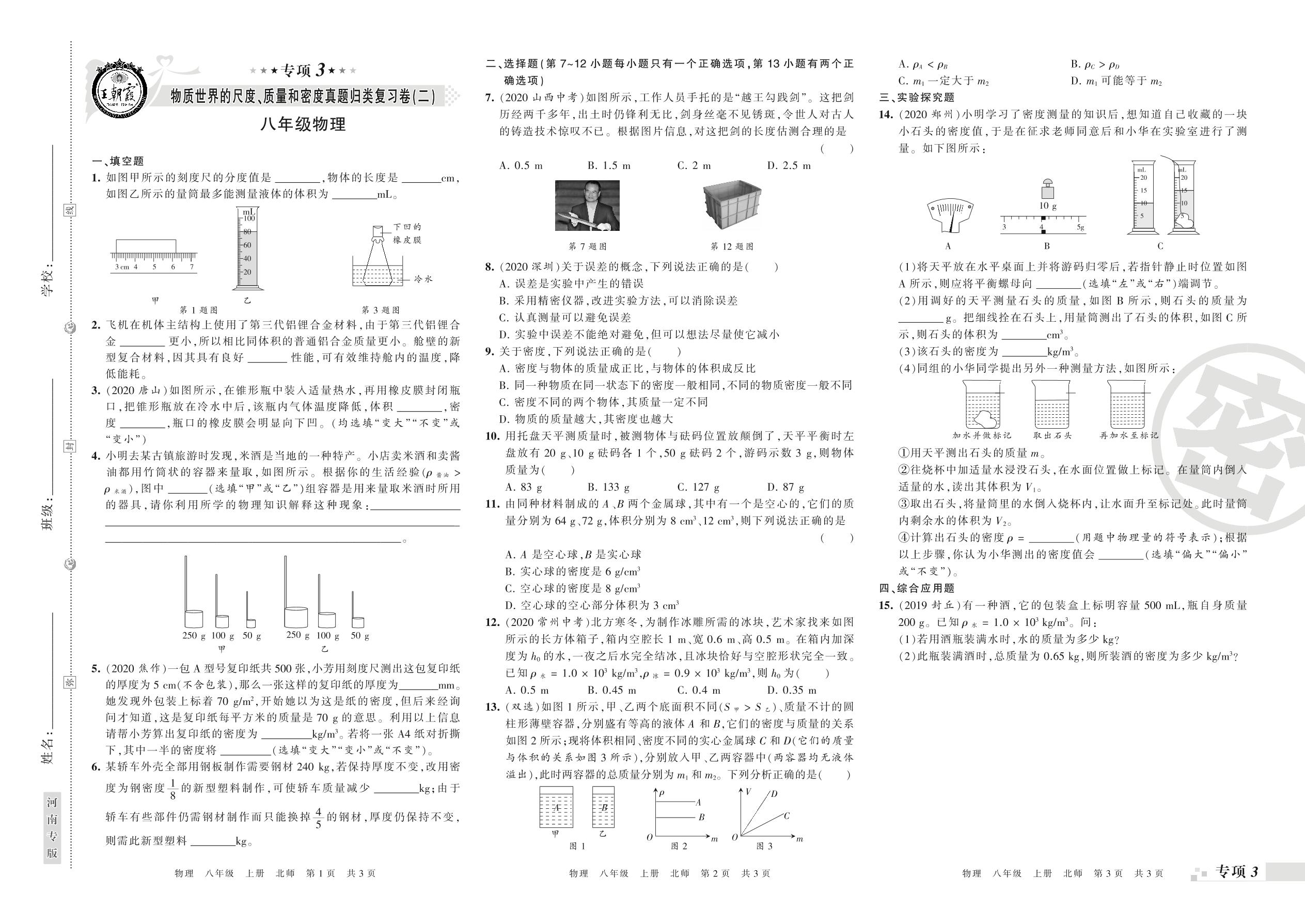 王朝霞期末专项卷——物质世界的质量、尺度和密度、物质的简单运动真题归类复习八年级上册物理(北师版)【0】