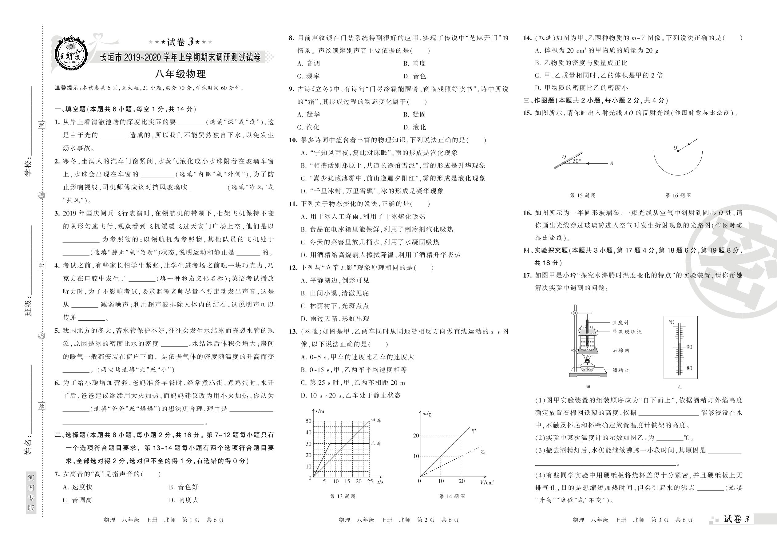 2019-2020学年第一学期长垣市八年级物理试卷(北师版)【3】