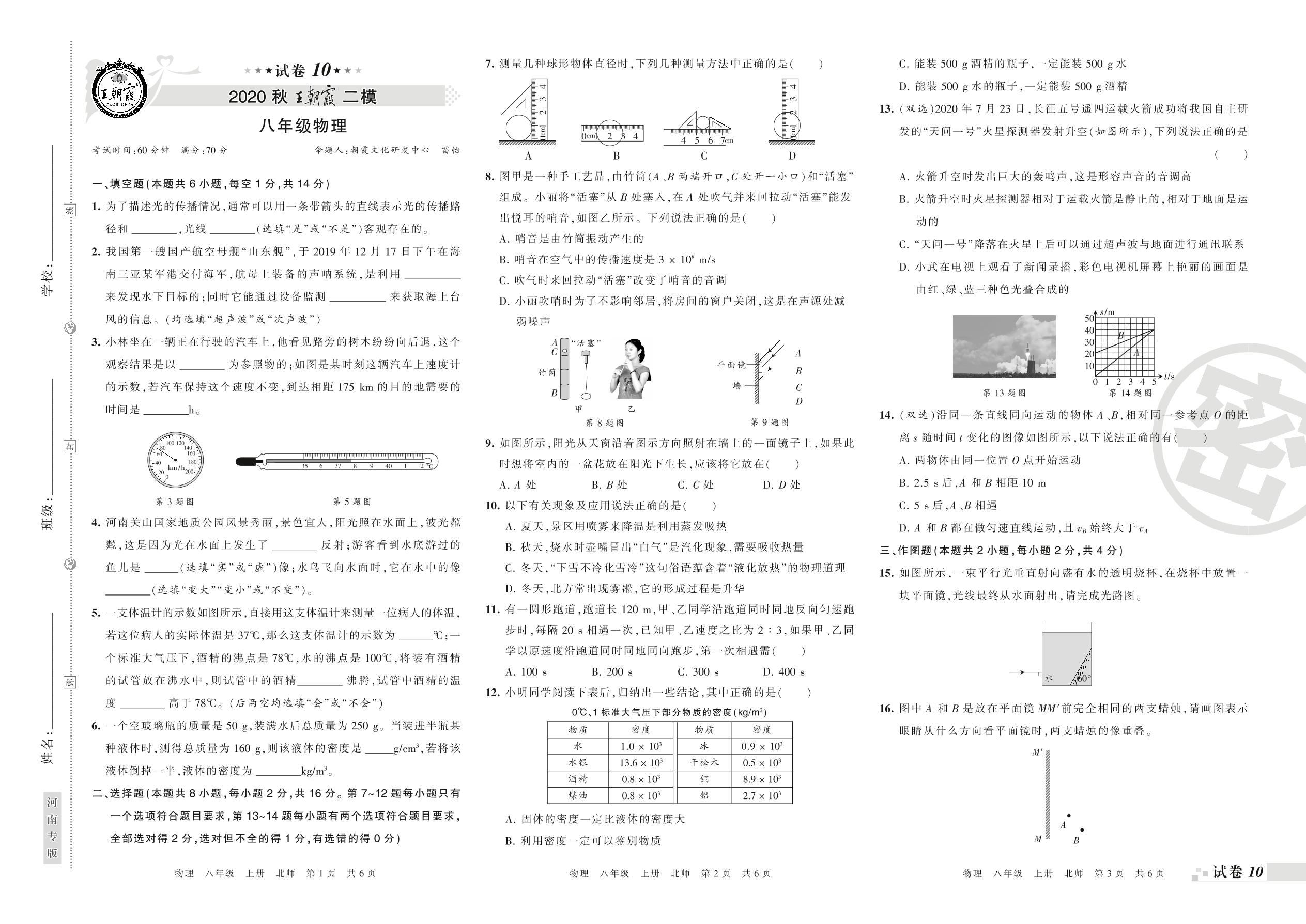 王朝霞期末模拟卷八年级上册物理(北师版)_R21080692814【10】