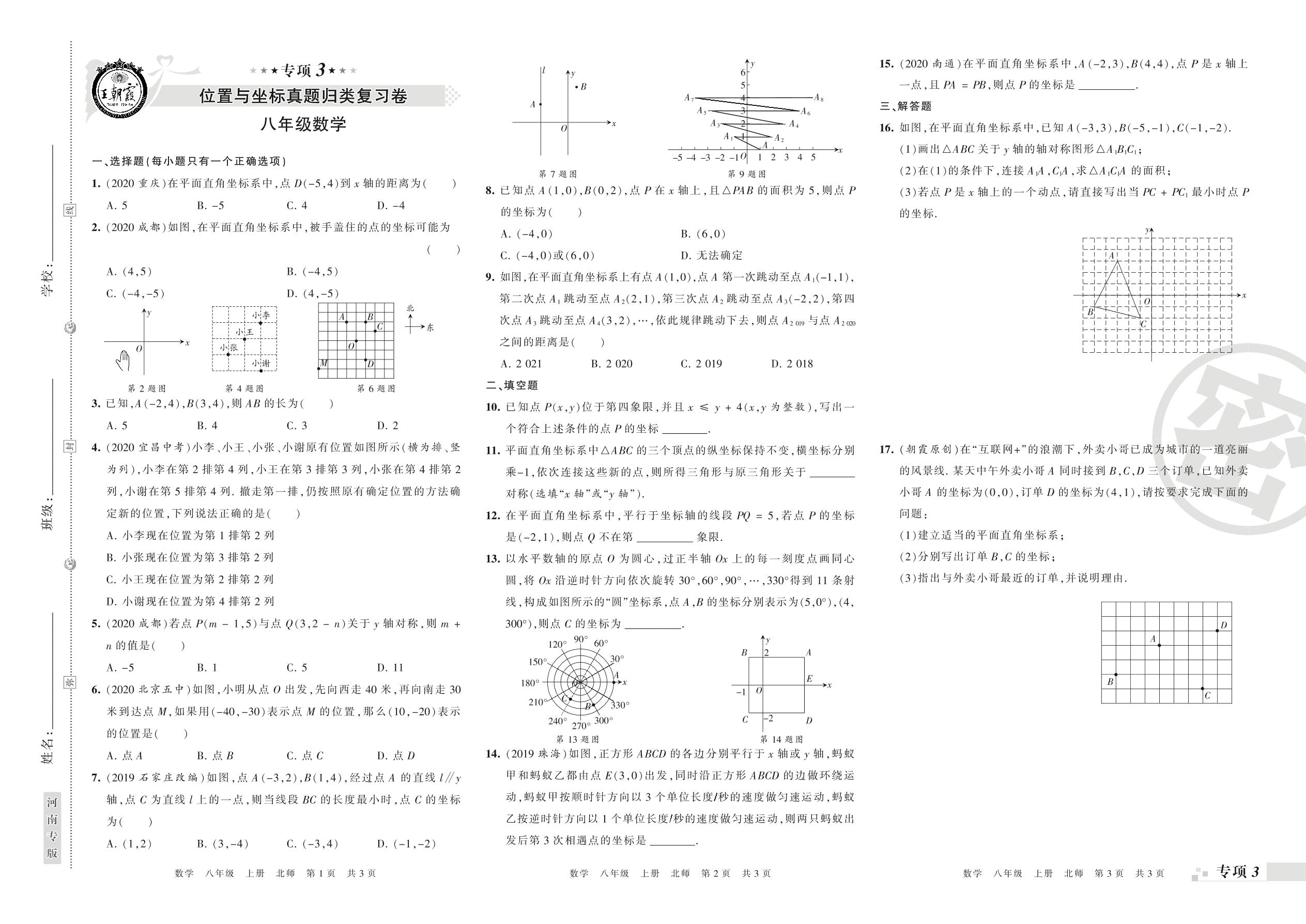 王朝霞期末专项卷——位置与坐标、函数与一次函数的图象真题归类复习八年级上册数学(北师版)_R21080692832【0】