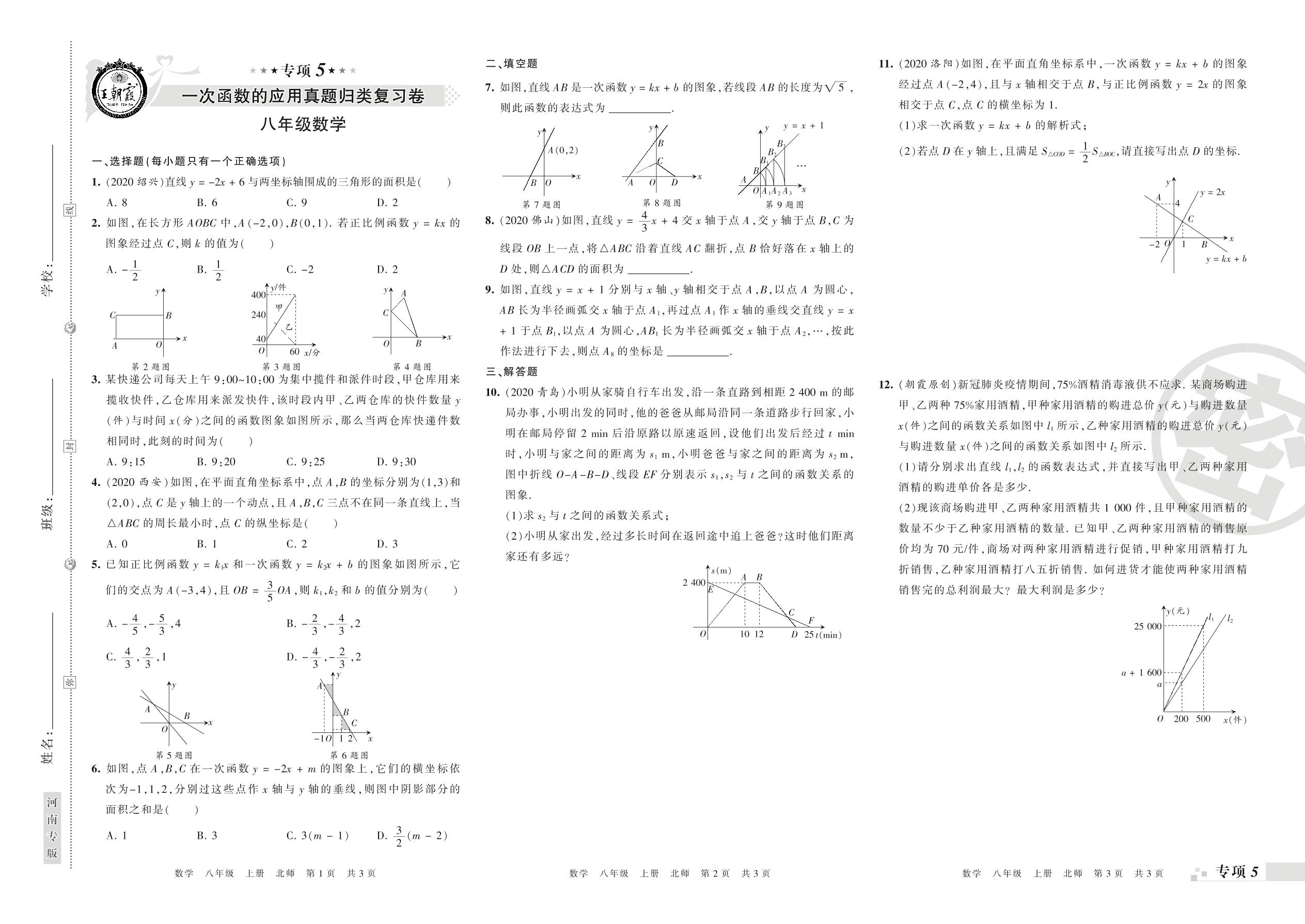 王朝霞期末专项卷——一次函数的应用、二元一次方程组真题归类复习八年级上册数学(北师版)_R21080692838【0】