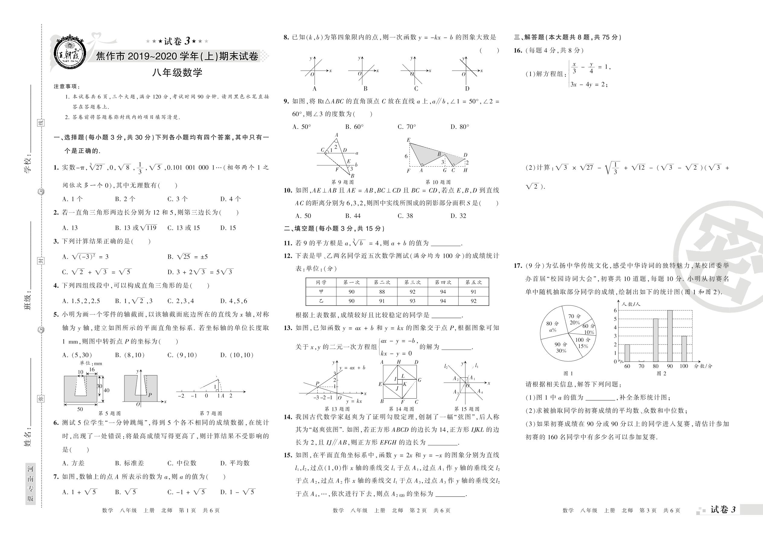 2019-2020学年第一学期焦作市八年级数学试卷(北师版)【3】