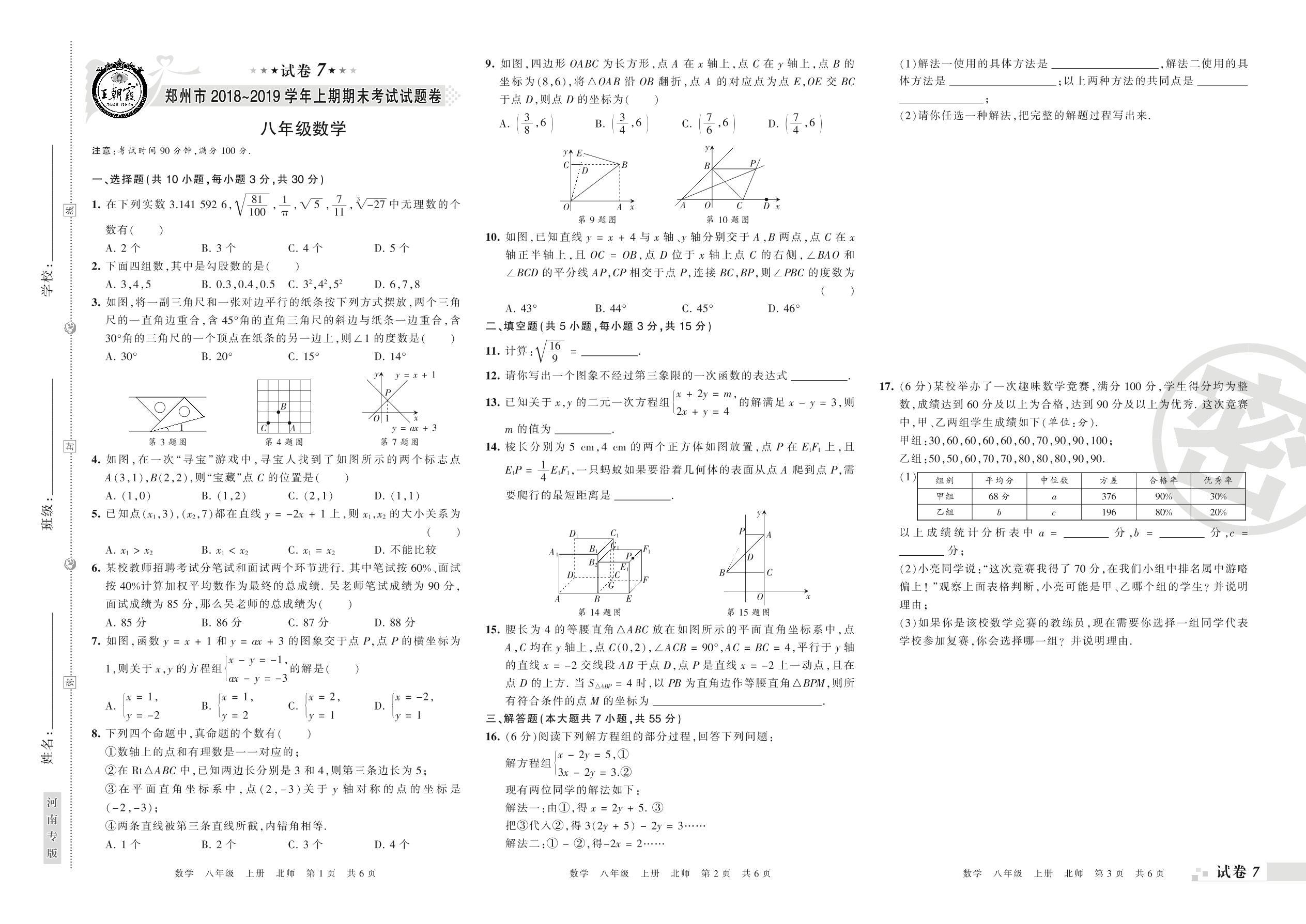 2018-2019学年第一学期郑州市八年级数学试卷(北师版)【7】