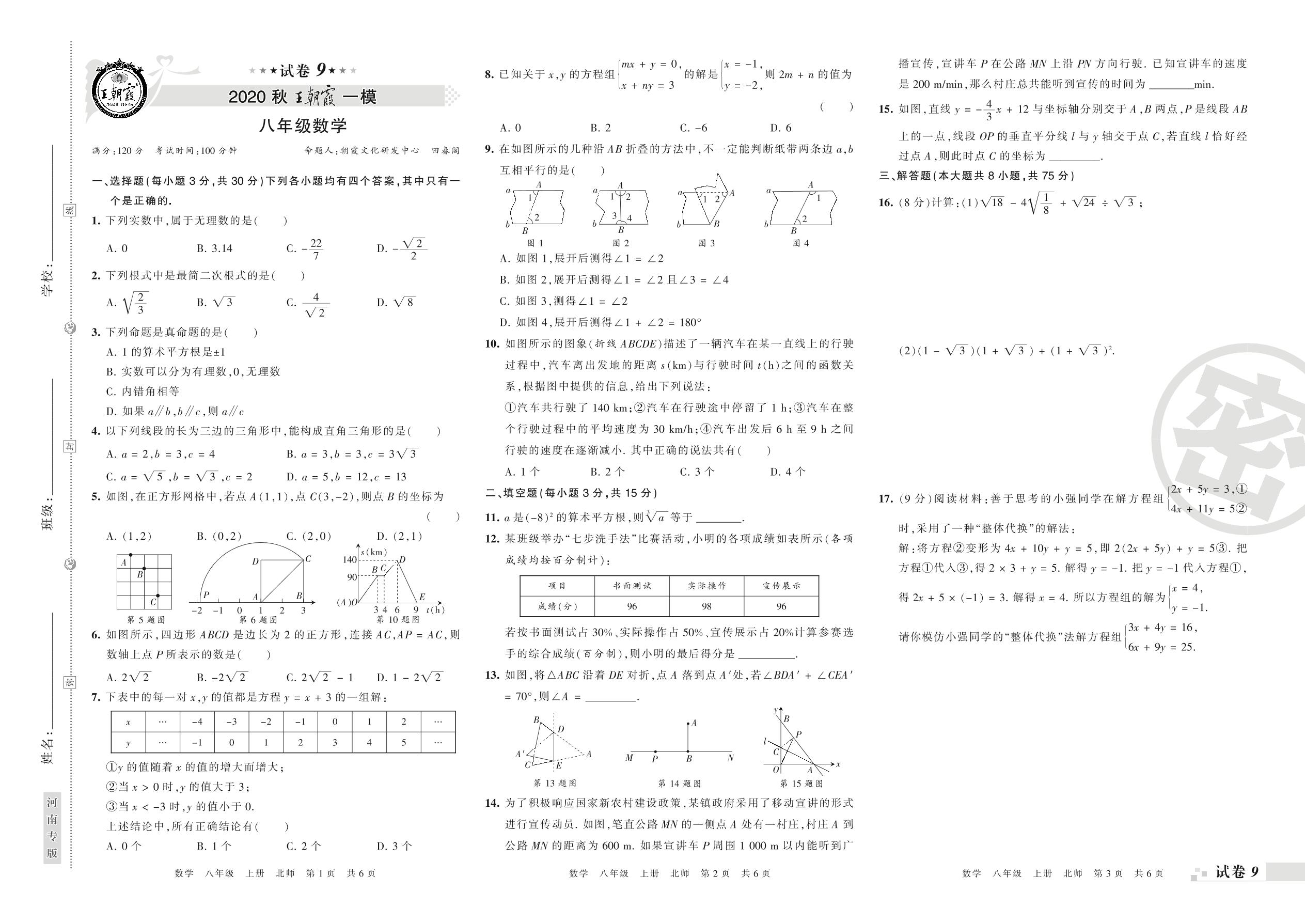 王朝霞期末模拟卷八年级上册数学(北师版)_R21080692922【9】
