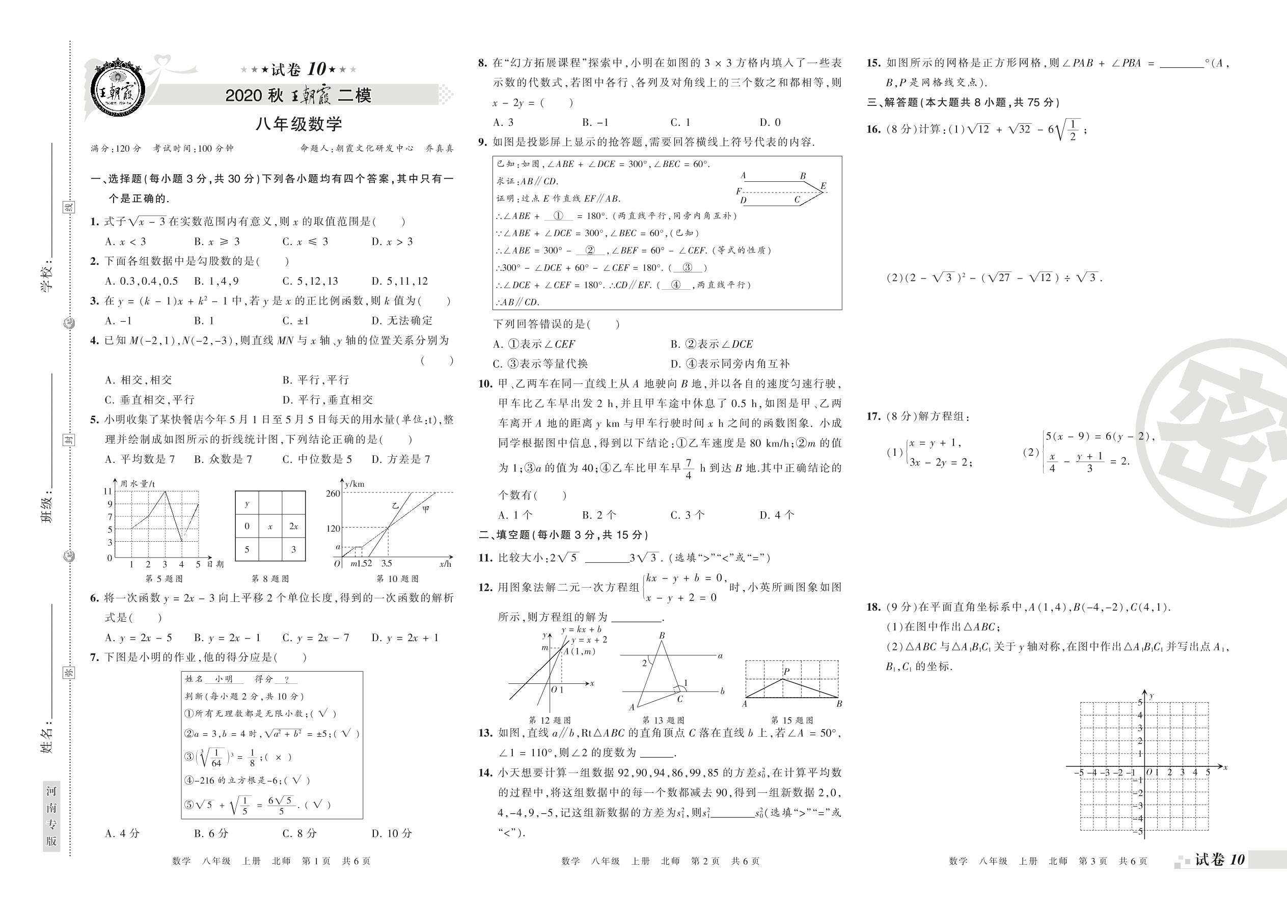 王朝霞期末模拟卷八年级上册数学(北师版)_R21080692927【10】